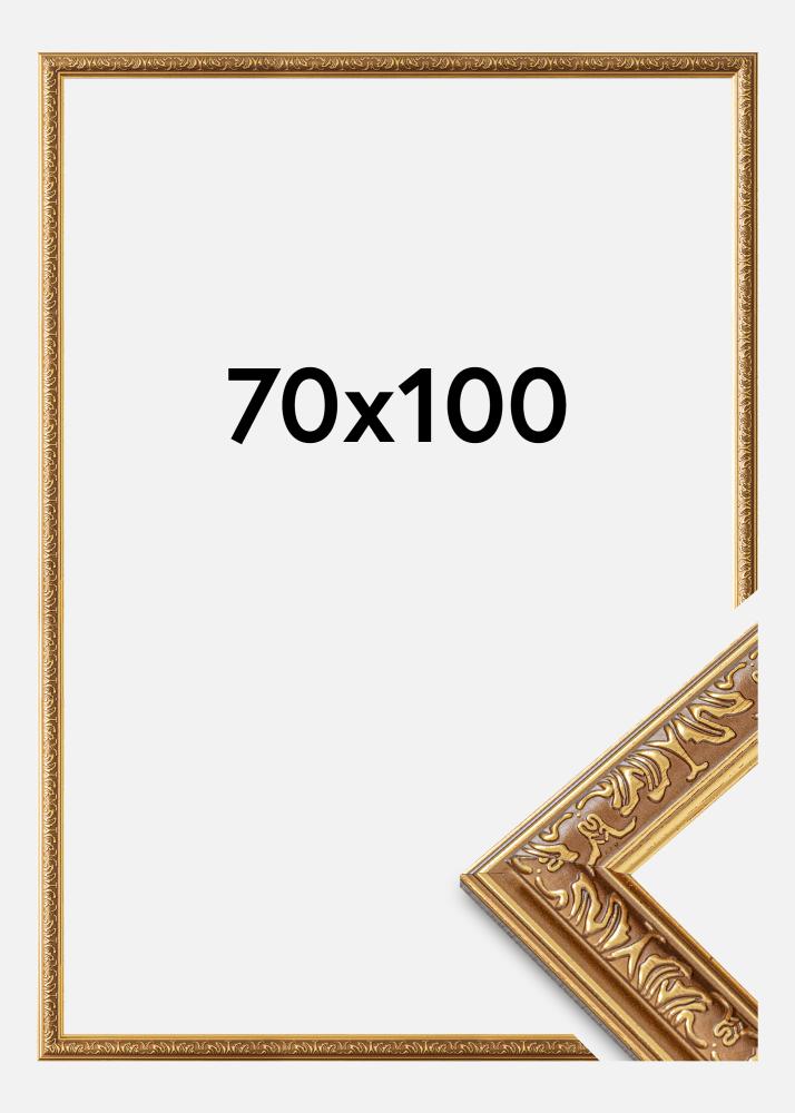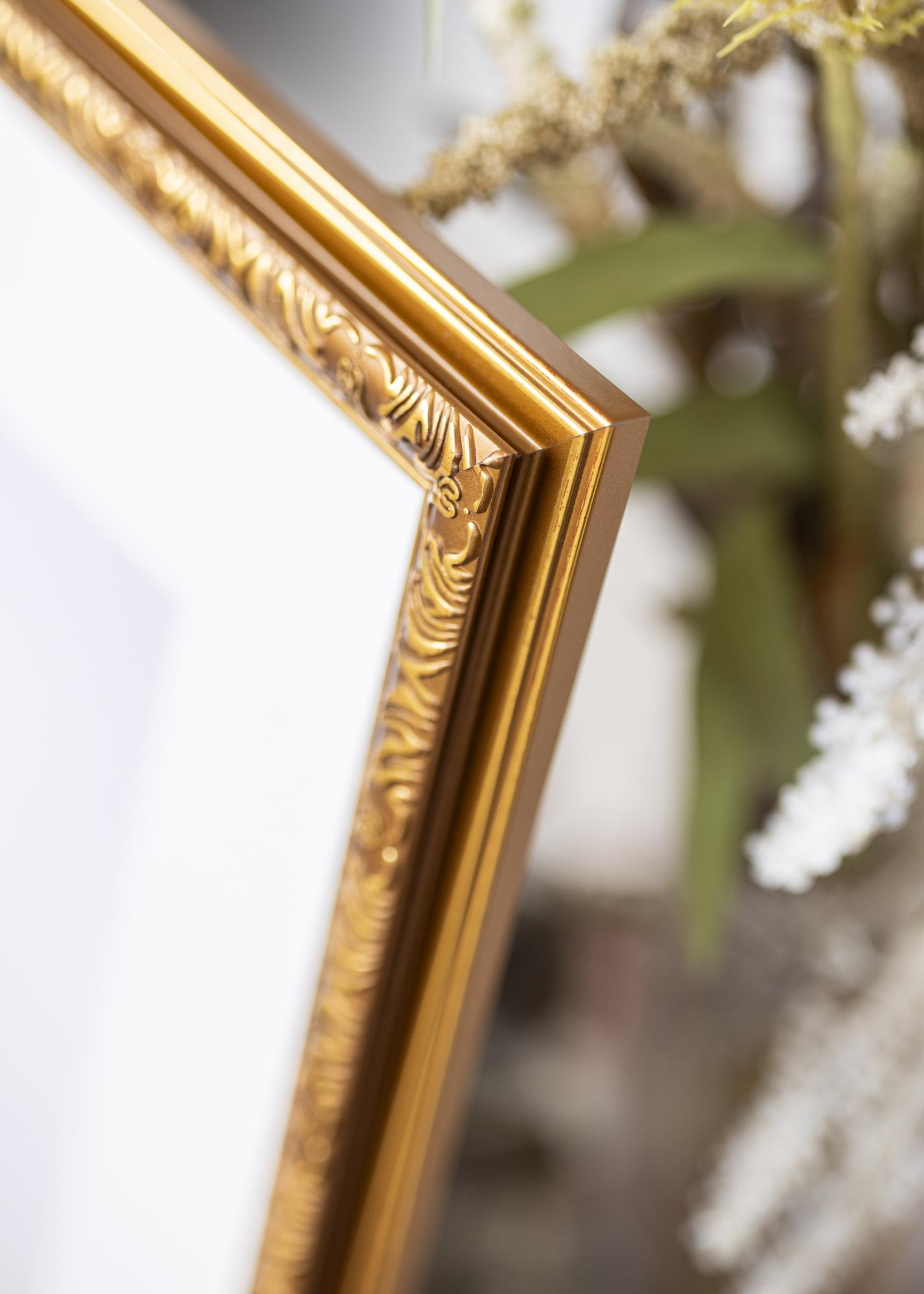 Ta okvir za fotografije v velikosti 70x100 cm je popolna kombinacija klasičnega dizajna in moderne funkcionalnosti. S svojo luksuzno zlato obdelavo in dekorativnimi, okrašenimi podrobnostmi, daje prefinjen pridih vašim umetninam ali fotografijam. Zapleteni vzorci vzdolž notranjega roba okvirja ustvarjajo tradicionalen in brezčasen občutek, zaradi česar je idealen za klasične in elegantne notranje sloge.