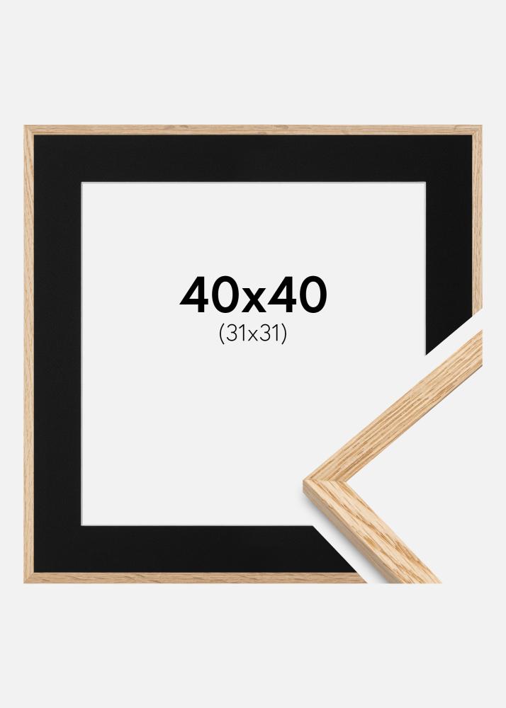 Okvir ima širino 11 mm in globino 13 mm, kar daje diskreten, a kljub temu prisoten občutek na steni. Matirana površina dopolnjuje črni paspartu in ustvarja harmonično celoto. Z zunanjimi merami 41,5x41,5 cm ta kvadraten okvir popolnoma ustreza slikam velikosti 32x32 cm.