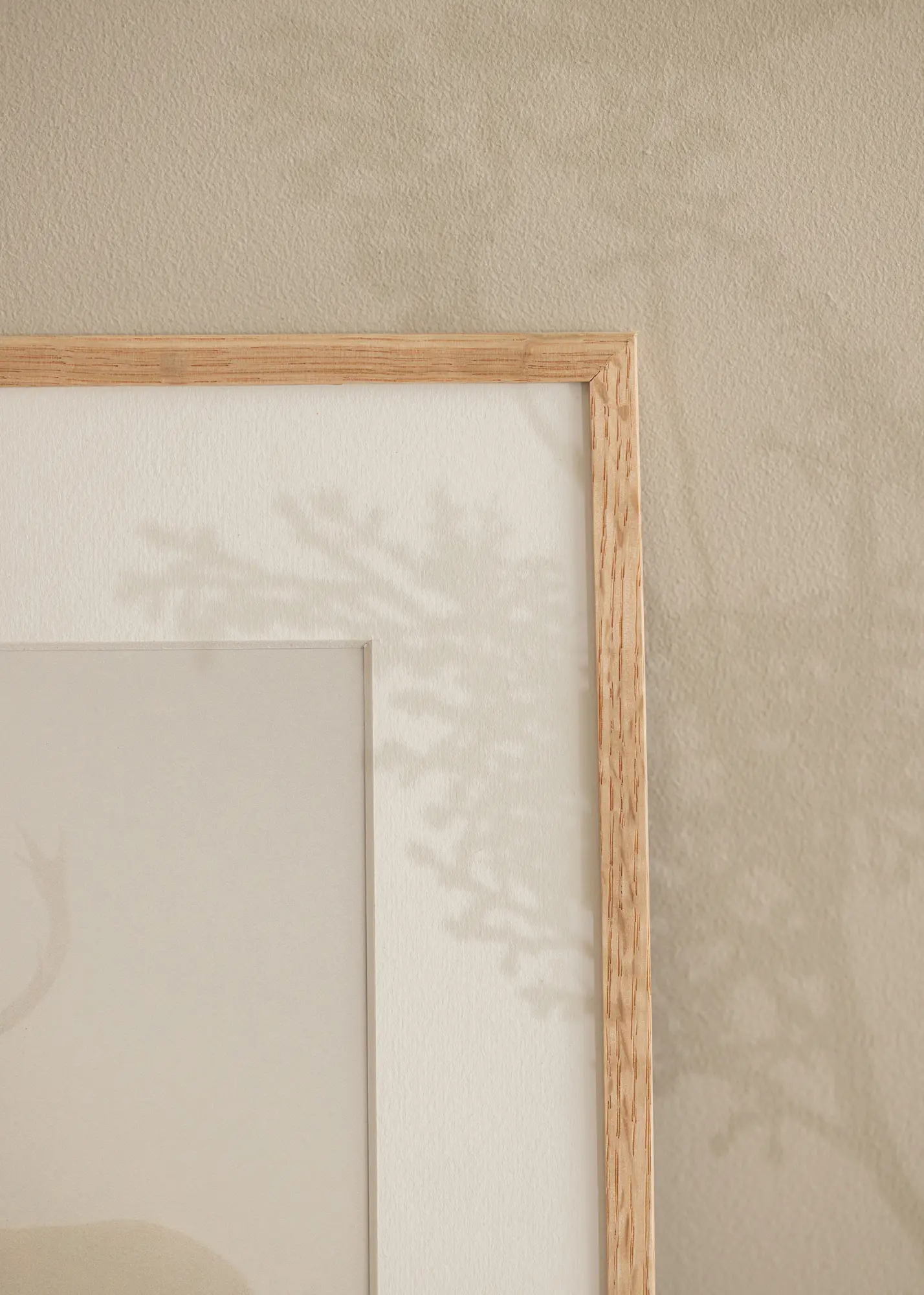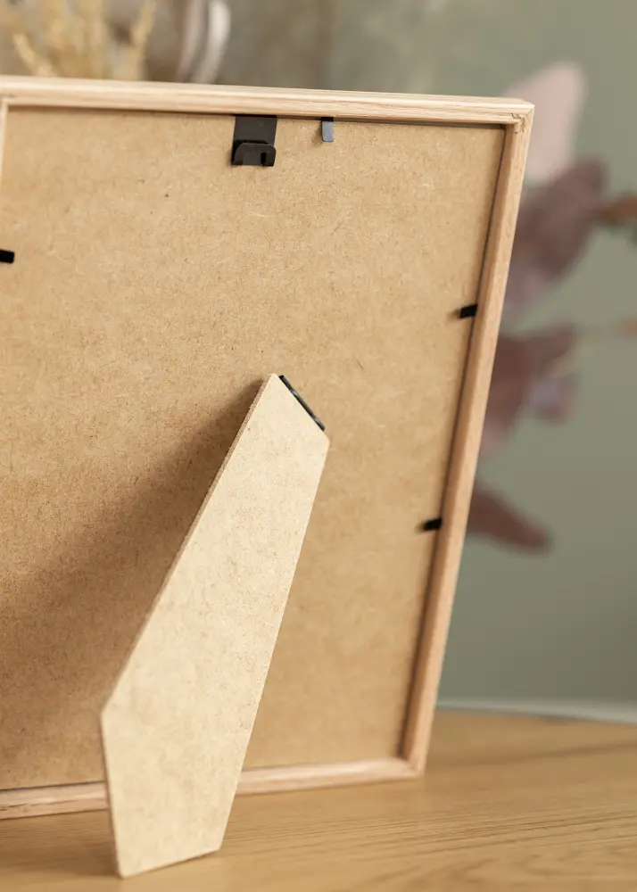 Okvir je izdelan iz hrastovega lesa in ima naravni odtenek z neobdelano površino. Opremljen je z akrilnim steklom, katere prednosti so, da je lahek in brez drobcev – hkrati pa ima enako jasno ostrino kot navadno steklo!
