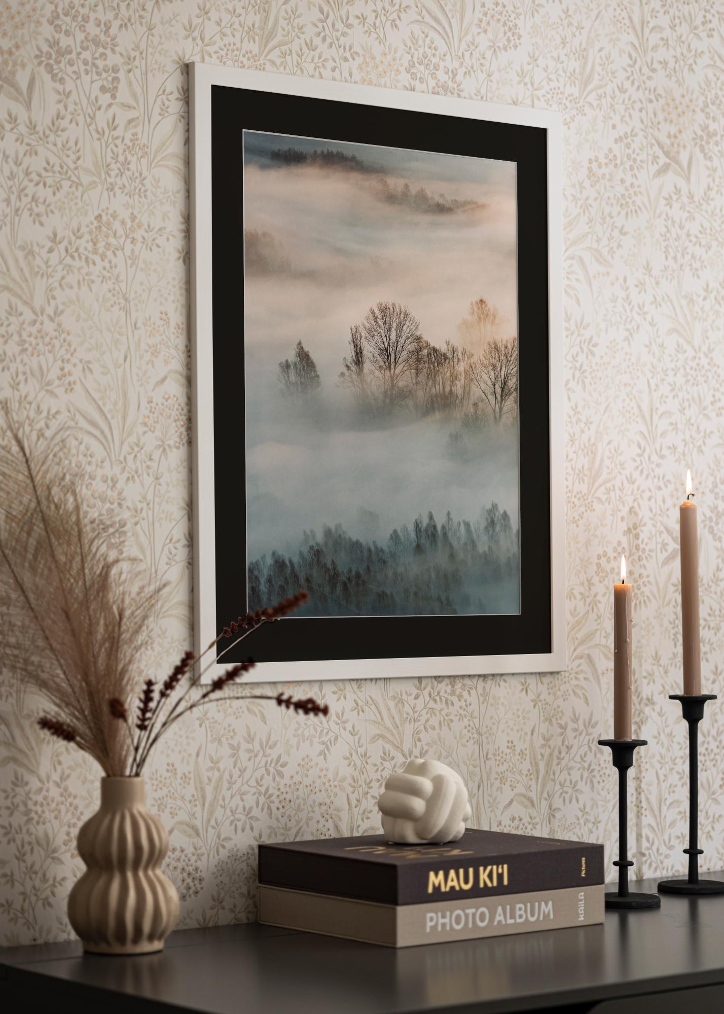 Doživite umetnost uokvirjanja z našim elegantnim belim okvirjem, ki vključuje črno paspartu. Ta kombinacija poudari vašo sliko v velikosti 24x34 cm in ji daje profesionalen in prefinjen občutek. Paspartu ustvarja vizualni prostor med okvirjem in sliko, kar okrepi izkušnjo opazovalca in zaščiti umetnino pred stikom s steklom.