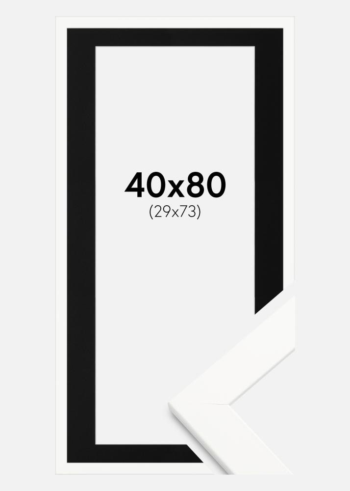 Doživite umetnost popolnosti z našim elegantnim belim okvirjem, ki je dopolnjen s prefinjeno črno paspartu, ki poudari vašo sliko v velikosti 30x74 cm. Gladek, mat površinski premaz in diskretna širina 25 mm omogočata eleganten okvir, ki ustreza vsem vrstam notranje opreme.