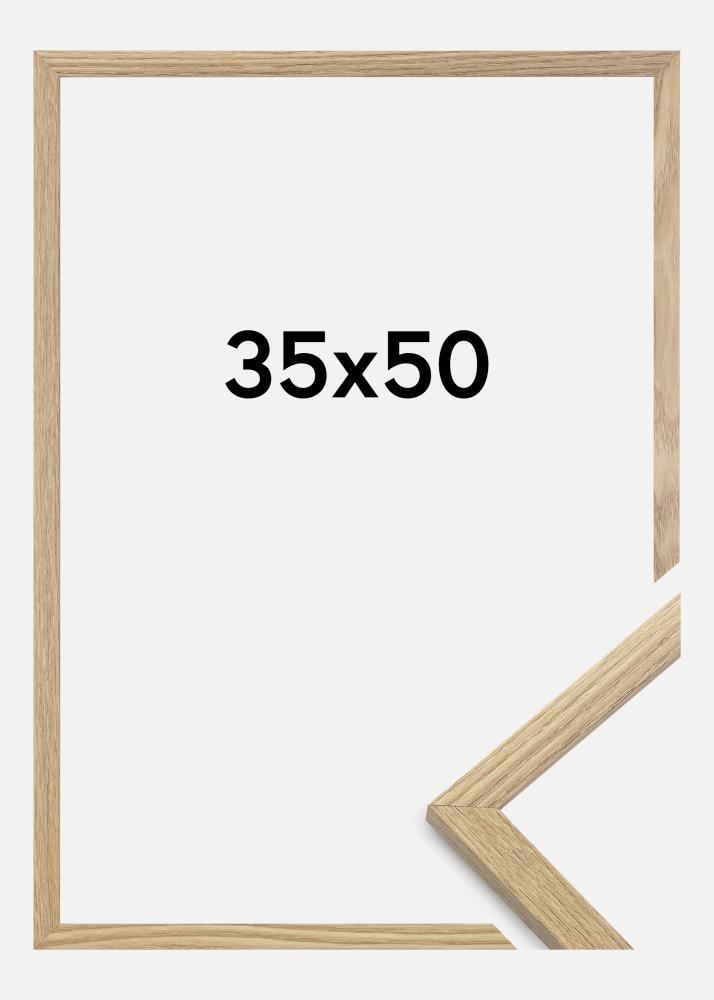 Okvir je izdelan iz MDF-materiala s folirano površino v barvi hrasta in ima tanko širino profila 14 mm. Na voljo je veliko prostora za dopolnitev vaših slik z luksuznim passepartoutom, zahvaljujoč notranji globini okvirja (globina utora) 12 mm.