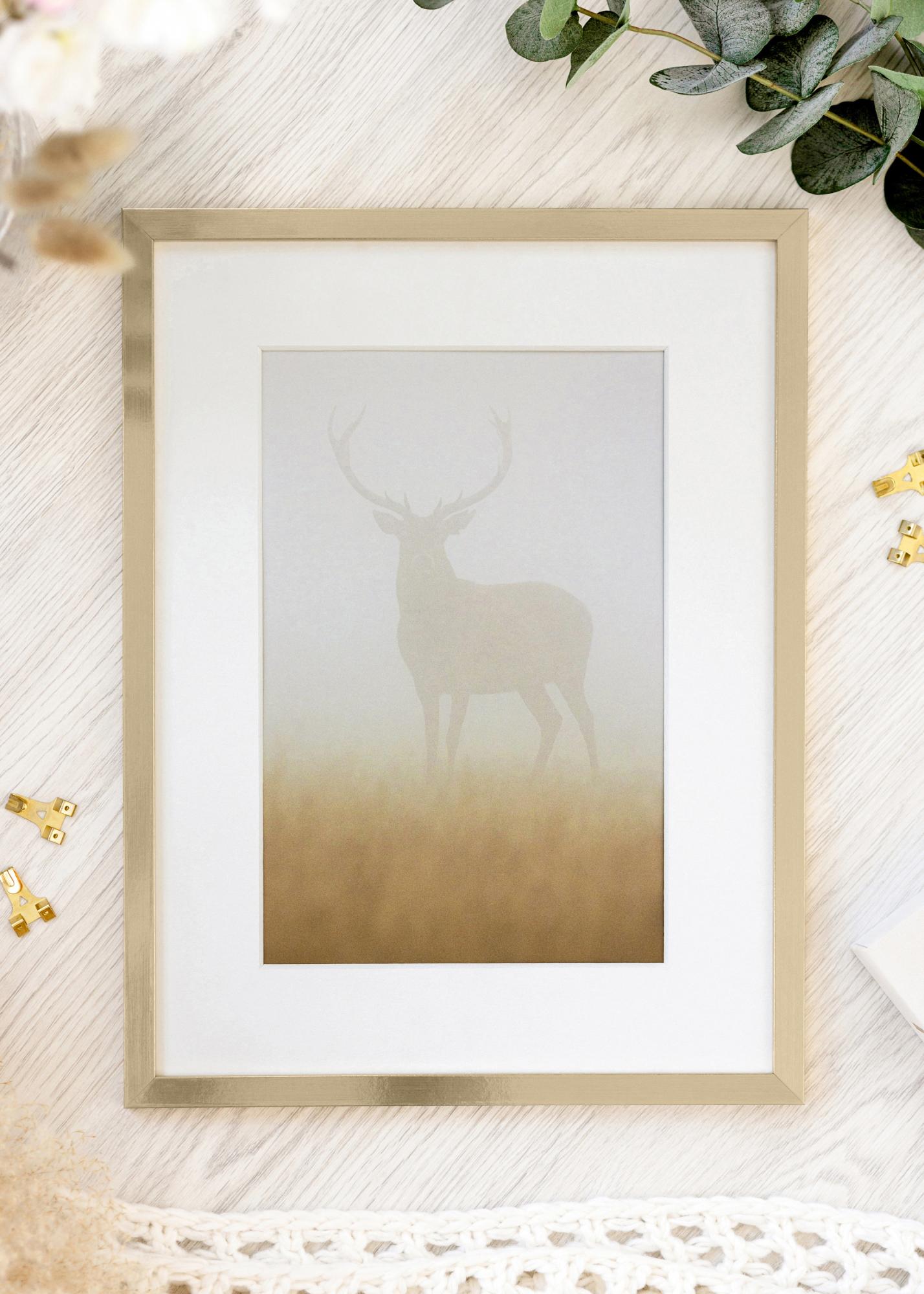Z okvirjem širokim 14 mm, ta 21 x 29,7 cm velik okvir nudi izrazito a vseeno subtilno uokvirjanje vašega umetniškega dela. Montaža je enostavna zahvaljujoč upogljivim zatičem, s prednameščenimi kovinskimi obešali na zadnji strani pa je vaš novi zlati okvir pripravljen za takojšnje obešanje. Ne glede na to, ali iščete en sam foto okvir ali več njih za ustvarjanje zbirke, ta cenovno dostopen in vsestranski okvir je na voljo v več velikostih, da ustreza vsem vašim potrebam po okvirjanju.