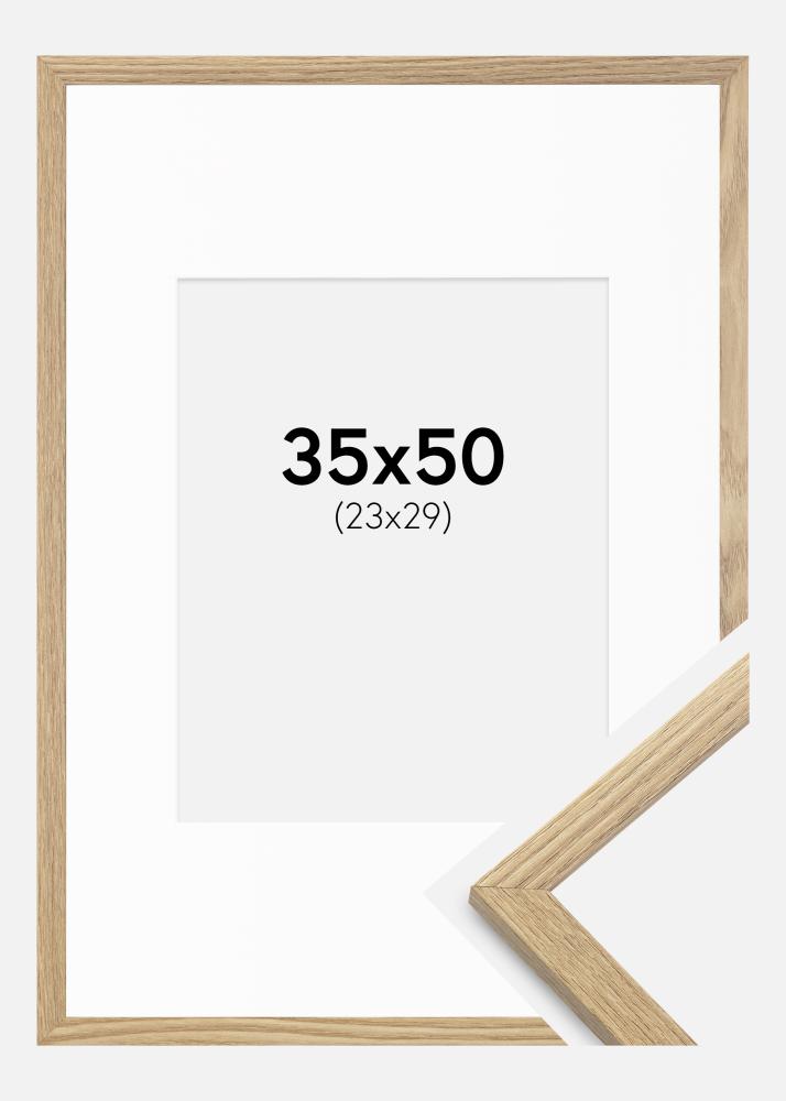 Doživite umetnost poudarjanja vaših slik z našim elegantnim okvirjem v hrastovem vzorcu, opremljenim z belo passepartout, ki daje profesionalen pridih. Passepartout poudari vašo sliko v velikosti 24x30 cm, hkrati pa ščiti fotografijo pred stikom s steklom. To pripomore k ohranjanju kakovosti slike skozi čas.