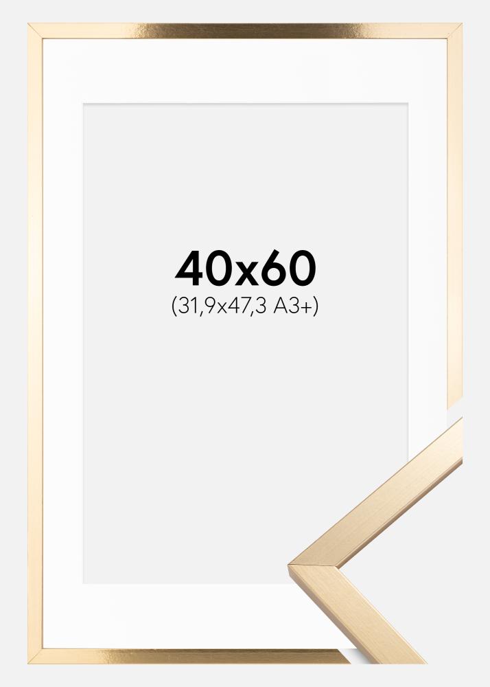 Polepšajte svoj dom s pridihom elegance tako, da uokvirite svoje najljubše slike v tem elegantnem zlatem okvirju s paspartujem. Bela paspartuju poudari vašo sliko v formatu A3+ (32,9x48,3 cm) in zagotavlja profesionalno uokvirjanje, ki se popolnoma prilega v vsak prostor. Sjajni zlat ton okvirja prinaša razkošen občutek in postane čudovit detajl na steni.
