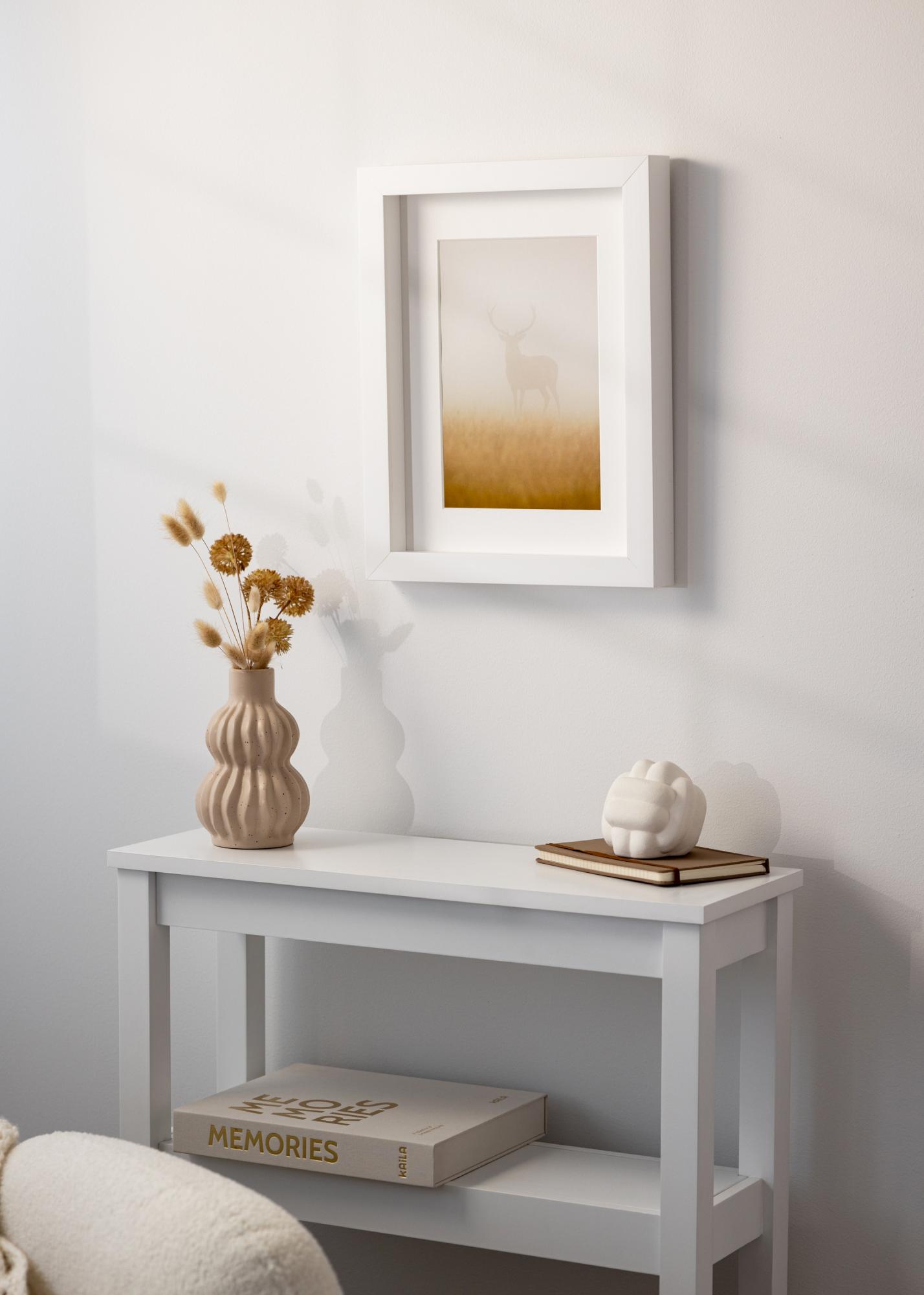 Okvir Tyr Beli je eleganten in preprost okvir za slike, ki je popoln za poudarjanje vaših najljubših fotografij in umetniških del. S svojo belo barvo daje svež in moderen vtis, ki se zlije z večino slogov notranje opreme. Ne glede na to, ali želite ustvariti harmonično galerijsko steno ali dati posamezni sliki pozornost, ki si jo zasluži, je ta okvir za slike odlična izbira.