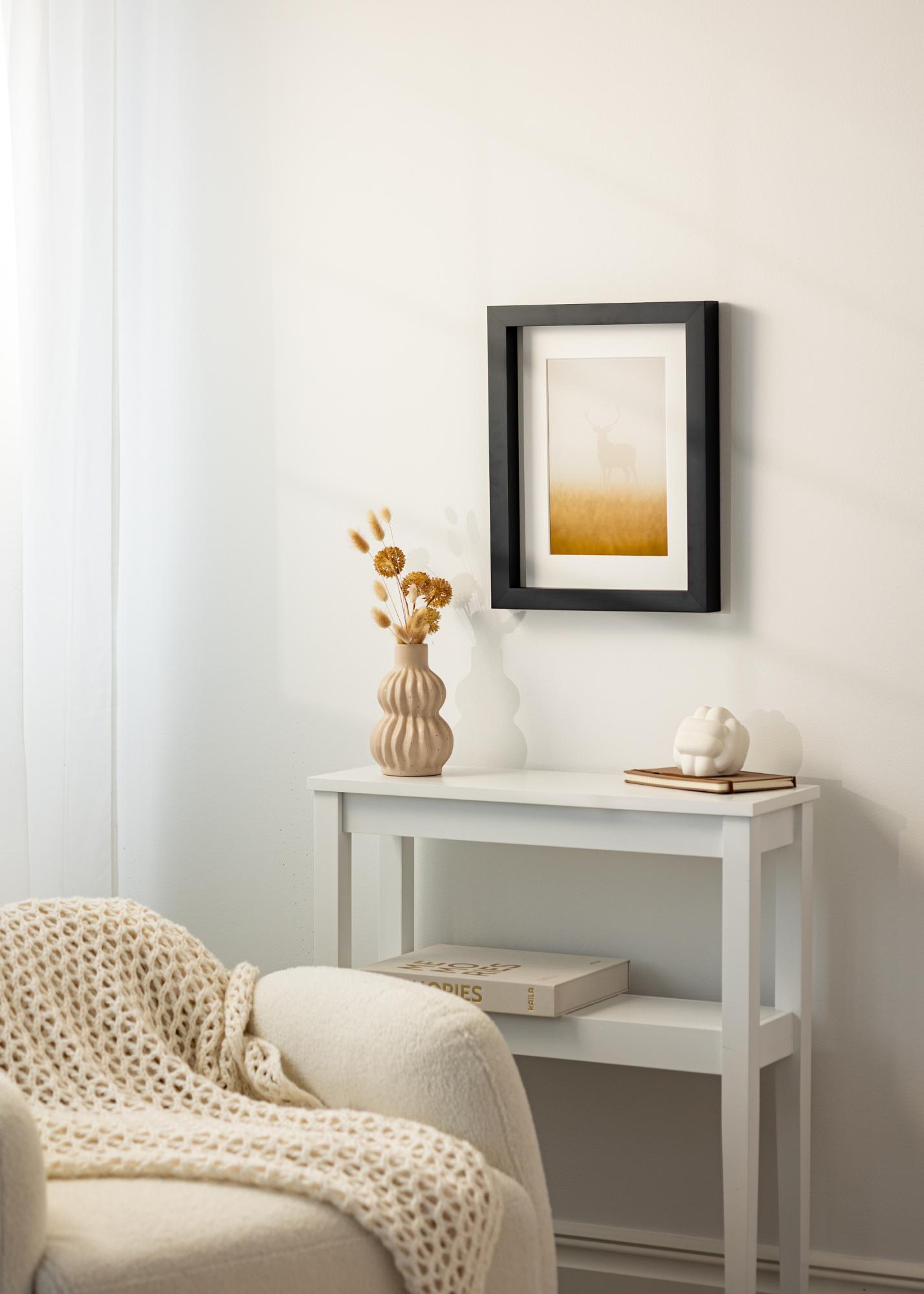 Ena izmed velikih prednosti Okvirja Tyr Črna je njegova prilagodljivost pri montaži motiva. Izberete lahko, da svoje umetniško delo postavite čisto zadaj v okvir, da ustvarite lebdeč vtis, ali bližje sprednji strani za bolj tradicionalni videz. Ta prilagodljivost olajša ujemanje okvirja z vašim umetniškim delom in ostalo notranjo opremo.