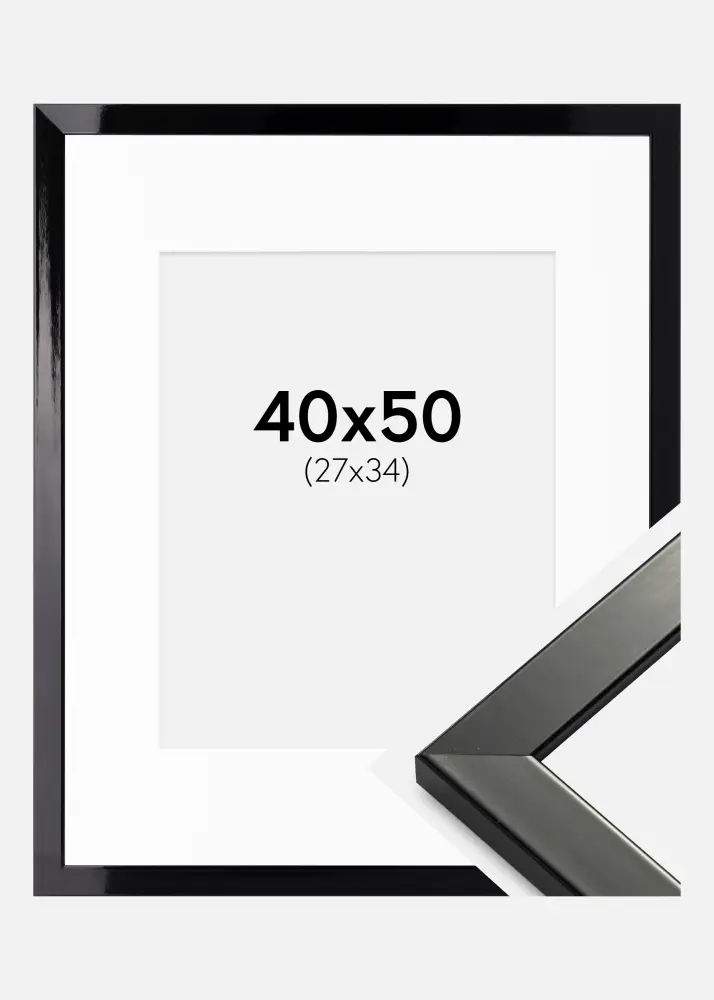 Okvir Uppsala Črna visok sijaj 40x50 cm - Paspartŭ Bela 28x35 cm