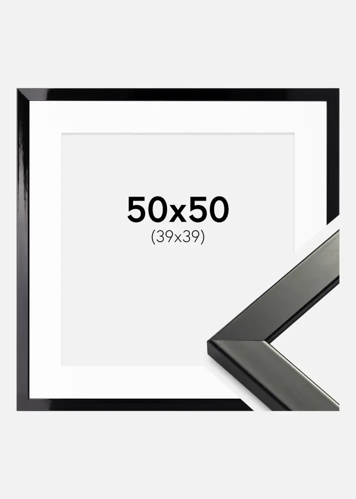 Okvir Uppsala Črna visok sijaj 50x50 cm - Paspartŭ Bela 40x40 cm