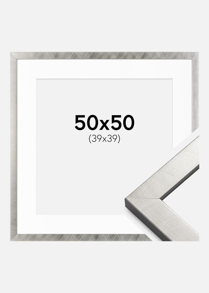 Okvir Uppsala Srebrna 50x50 cm - Paspartŭ Bela 40x40 cm