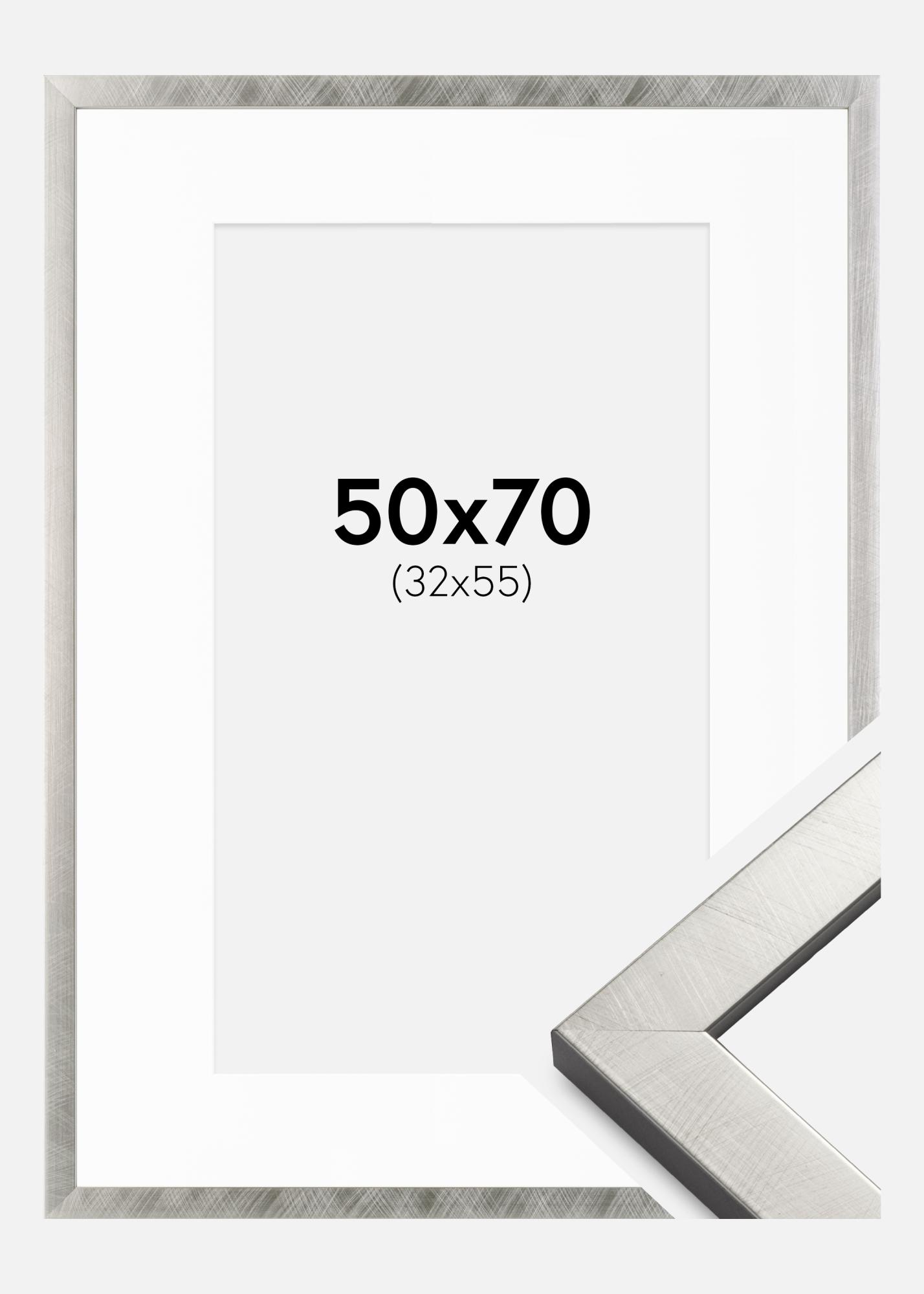 Polepšajte svoj dom z elegantnim srebrnim okvirjem, ki lepo uokviri vaše slike v velikosti 33x56 cm. Priložen beli passepartout poudari vašo fotografijo ali umetniško delo z ustvarjanjem vizualne pavze med sliko in okvirjem, kar krepi doživetje opazovalca in daje profesionalen pridih. Bela barva passepartouta dopolnjuje sliko in pomaga zaščititi jo pred neposrednim stikom s steklom.