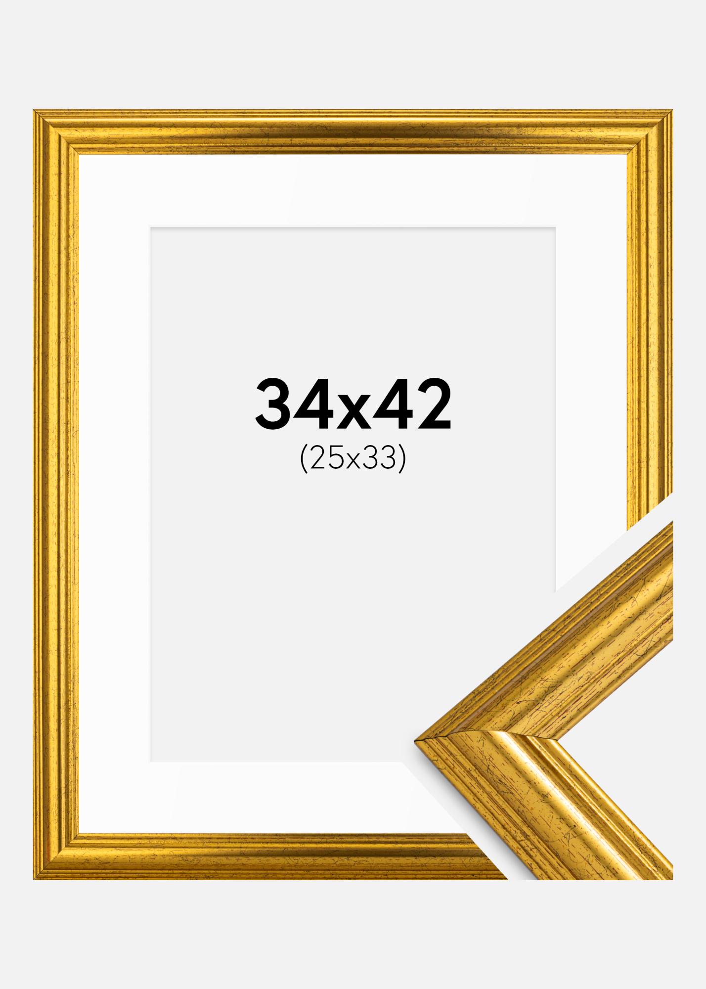 Pretvorite svoje slike v umetnine z našim elegantnim okvirjem v zlati barvi, ki je dopolnjen z belim passepartoutom. Ta okvir je zasnovan tako, da ustreza slikam velikosti 26x34 cm in nudi prefinjeno uokvirjanje, ki stilsko poudarja motiv.