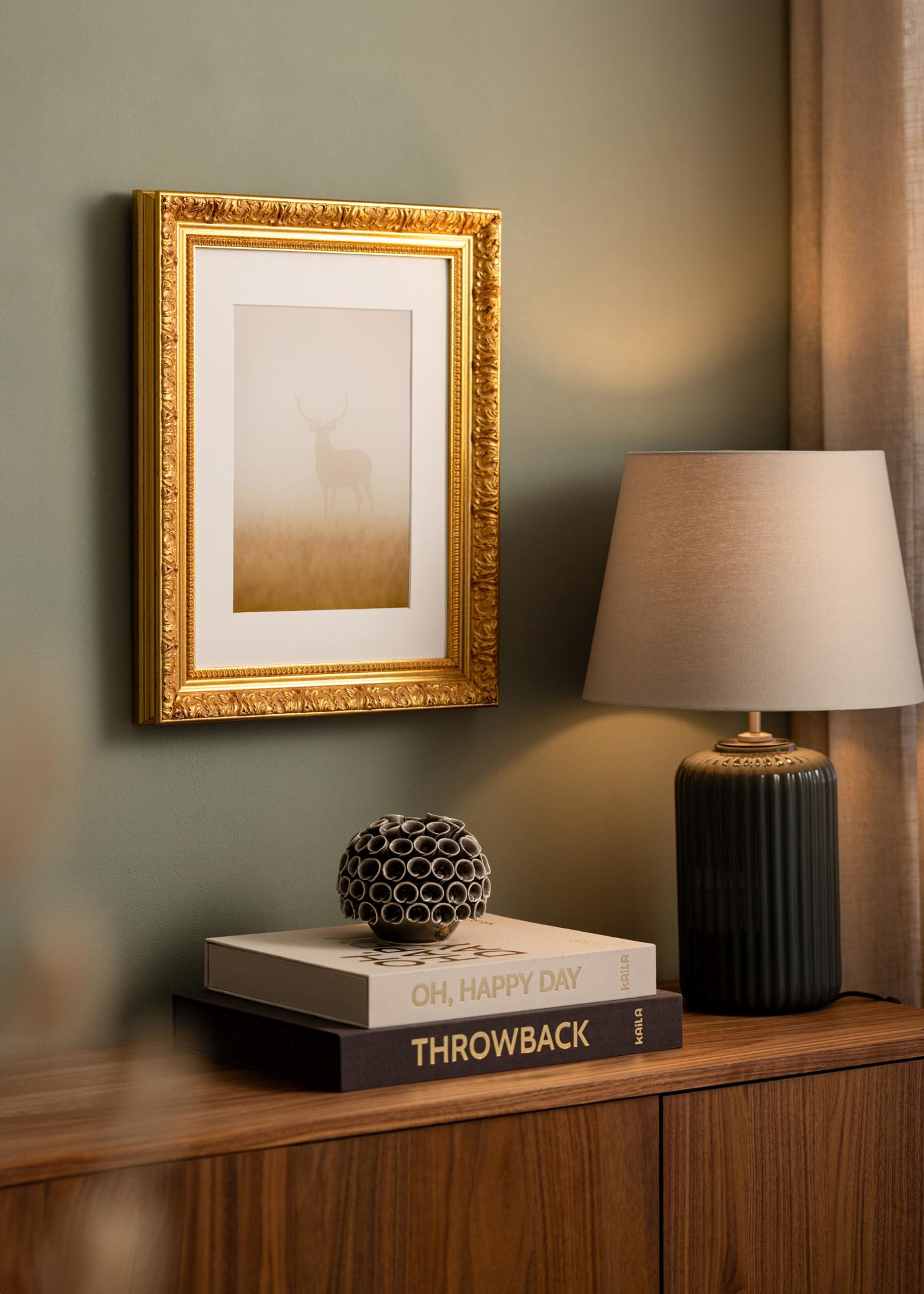 Okvir Vesta Zlato je popolna rešitev za vse, ki iščejo elegantno in brezčasno okvirjanje za svoje najljubše slike. S svojo klasično zlato barvo in detajlnimi okraski temu fotoramu daje občutek razkošja in tradicije v kateri koli prostor. Starinski zaključek, skupaj s subtilnimi rdečimi vložki, ustvarja toplo in vabljivo atmosfero, ki dopolnjuje tako moderne kot klasične notranje stile.