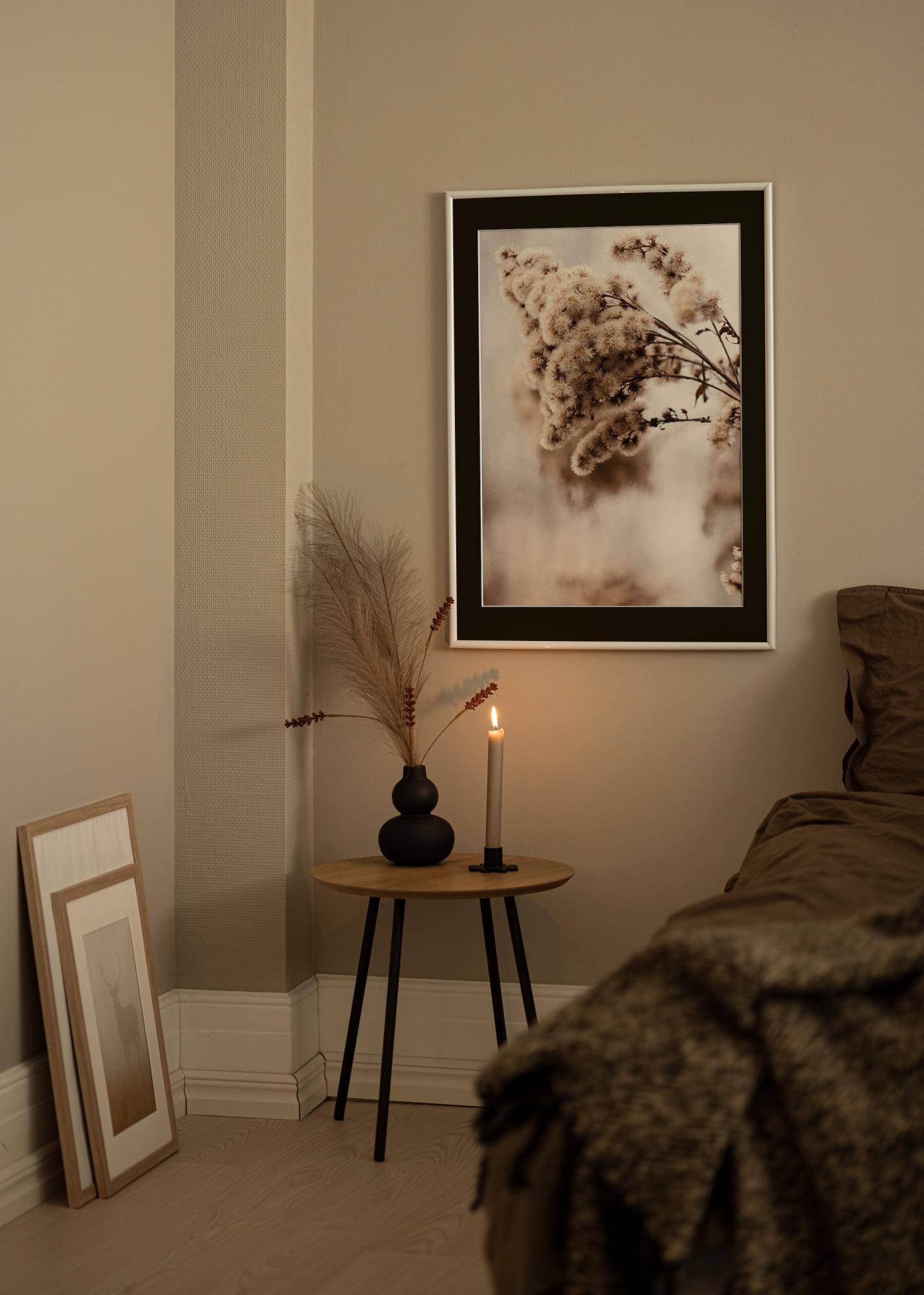 Podarite svojim najljubšim fotografijam pozornost, ki si jo zaslužijo, z elegantnim belim okvirjem, popolnim s črno paspartu. Ta prefinjena kombinacija poudarja kontrast in globino vaše fotografije ali umetnine, hkrati pa jo ščiti pred neposrednim stikom s steklom. Črna barva paspartuja zagotavlja vizualni premor, ki poudarja vtis slike in pomaga, da je gledalčevo osredotočenje na motivu.