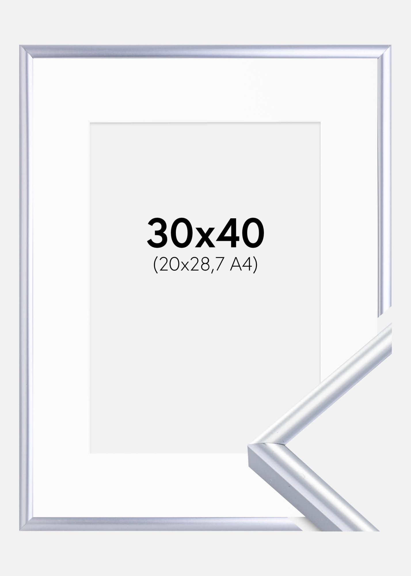 Preoblikujte svojo najljubšo fotografijo ali umetniško delo v eleganten zidni okras z našim prefinjenim srebrnim okvirjem s paspartujem. Ta okvir je zasnovan tako, da vaši A4 sliki (21 x 29,7 cm) doda tisto nekaj posebnega, kar poudari motiv in ustvari profesionalen in eleganten okvir. S svojo bleščečo srebrno površino in s širino okvira le 12 mm, daje diskreten a vendar posebej poudarjen rob vaši sliki.