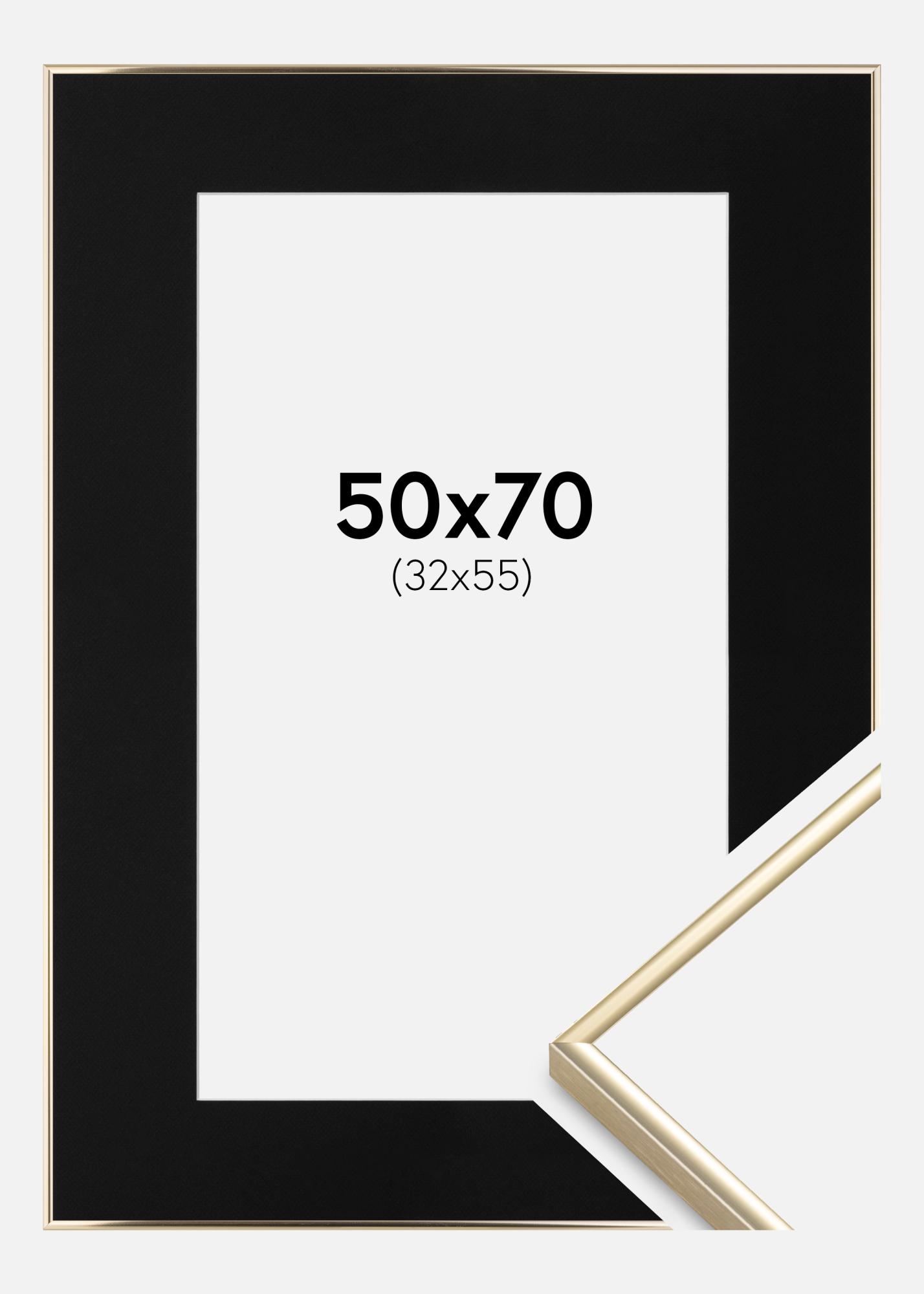 Spremenite vašo najljubšo fotografijo ali umetniško delo v pravi privlačen element z našim elegantnim zlatim okvirjem, dopolnjenim s črnim paspartujem. Okvir ima zunanje mere 50,4x70,4 cm in odprtino za sliko prilagojeno za 33x56 cm, kar paspartuju omogoča ustvarjanje profesionalnega okvirjanja in globine, ki na impresiven način poudari motiv. Črna barva paspartuja ustvarja močan kontrast, ki fotografijo resnično izpostavi.