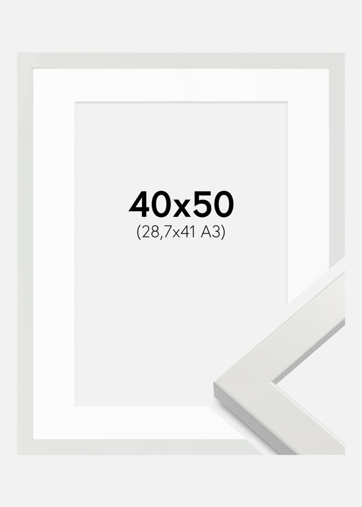 Okvir White Wood Glossy 40x50 cm - Paspartŭ Bela 29,7x42 cm (A3)
