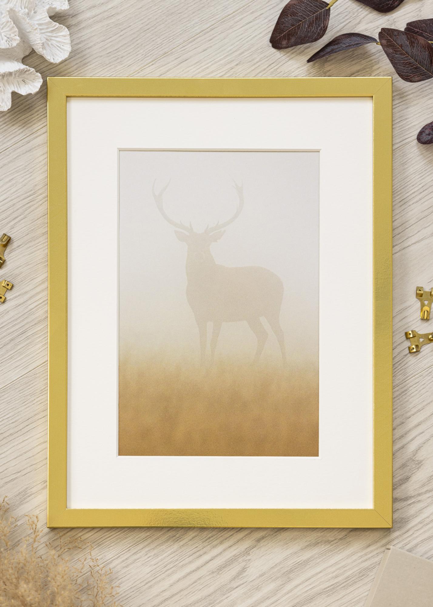 Ta okvir za fotografije je popolna kombinacija elegance in sodobnega oblikovanja. S svojo elegantno profilno linijo v razkošni zlati barvi daje prefinjen izraz kateremu koli prostoru. Okvir je narejen iz lesa in ima subtilen sijaj z rahlo strukturiranim zaključkom, kar še poudari njegov ekskluzivni občutek. Odlično ustreza motivom v velikosti 70x100 cm, kar ga naredi idealnega za večja umetniška dela ali fotografije.