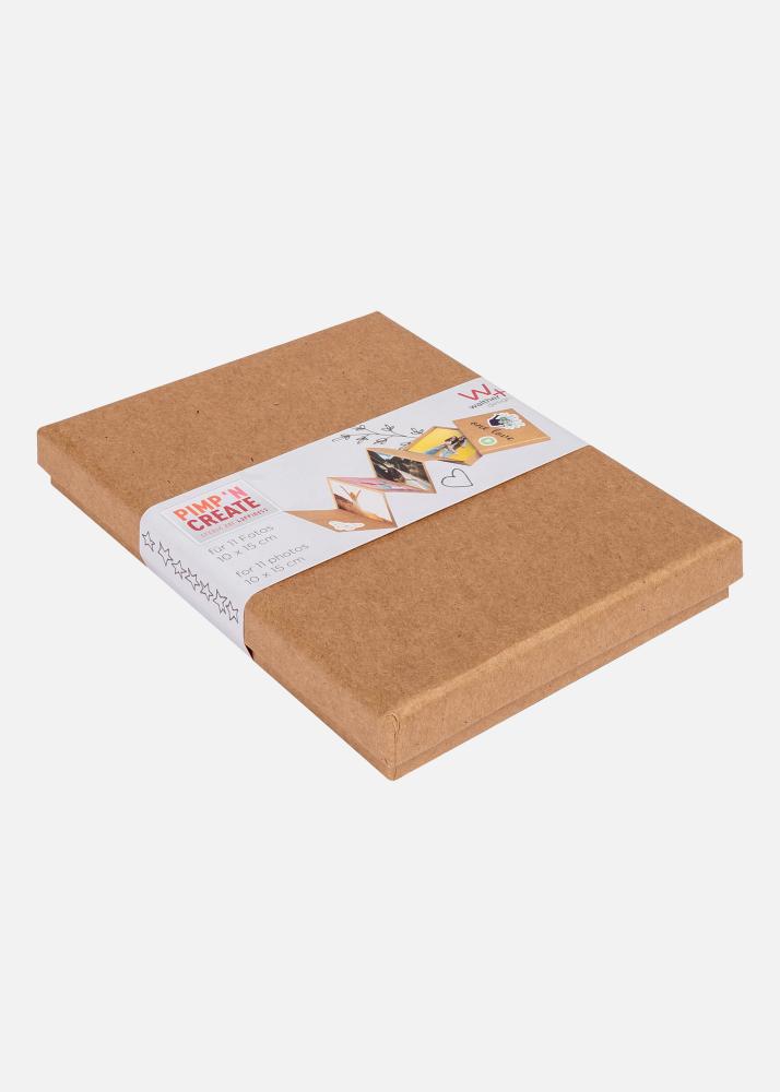 PAC Leporello-Box Rjava je eleganten harmonikasti album, zasnovan za shranjevanje 11 slik v velikosti 10x15 cm. Ovitek je izdelan iz rjavega papirja za ročna dela z enako rjavo notranjostjo, kar daje klasičen in brezčasen občutek. Ta album je popoln za zbiranje in razstavljanje vaših spominov na eleganten način.