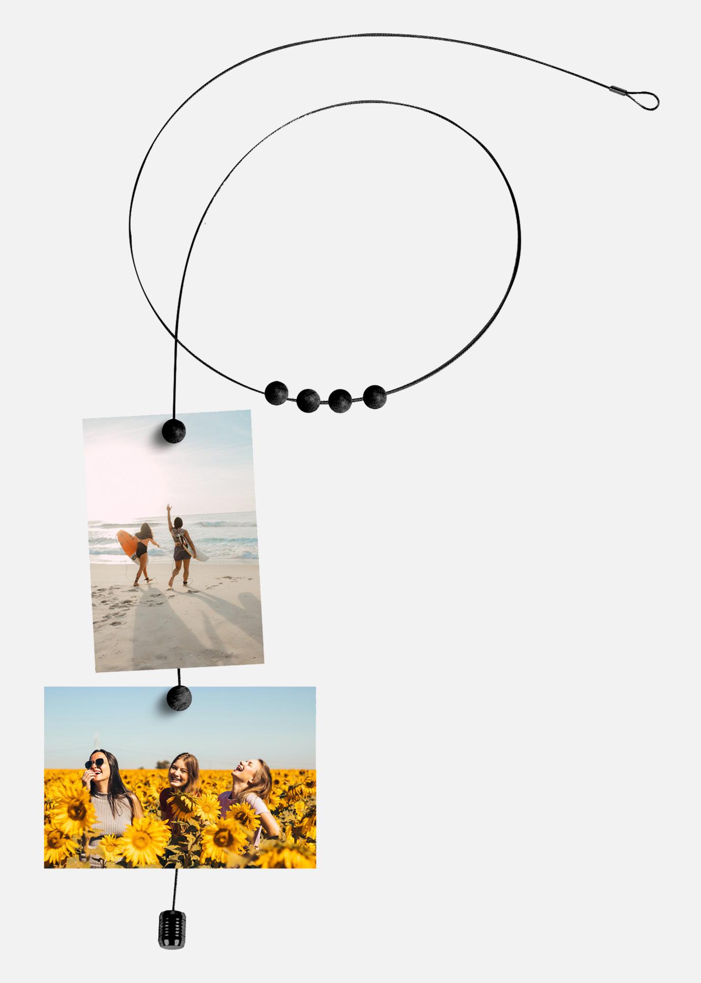 PAC Fotorep Črna je eleganten fotorep dolžine 150 cm z modernim črnim tonom. Odlična izbira za tiste, ki želijo elegantno in diskretno obešanje fotografij, kartic ali majhnih dekoracij v domu. K vrvi so priloženi močni magneti za enostavno obešanje.