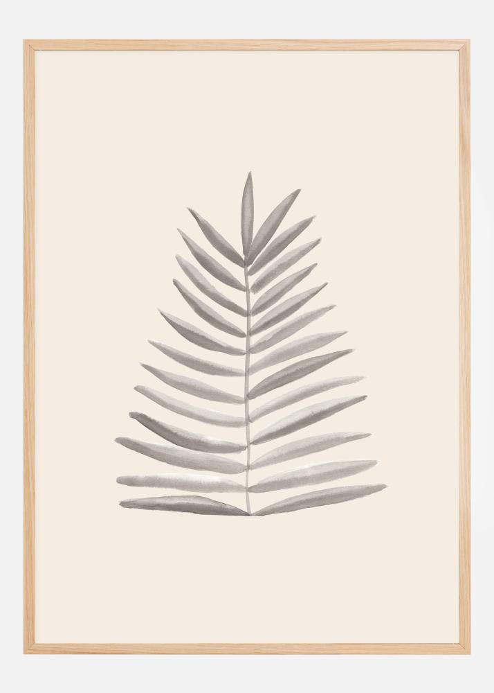Preprosta, a izrazita plakat s palmovim listom. Narisano na kremno beli podlagi, list stoji pokonci na svojem steblu. Kremno bela podlaga poudari majhen rjav palmov list. Dodajte ta pridih elegance na obarvano steno.