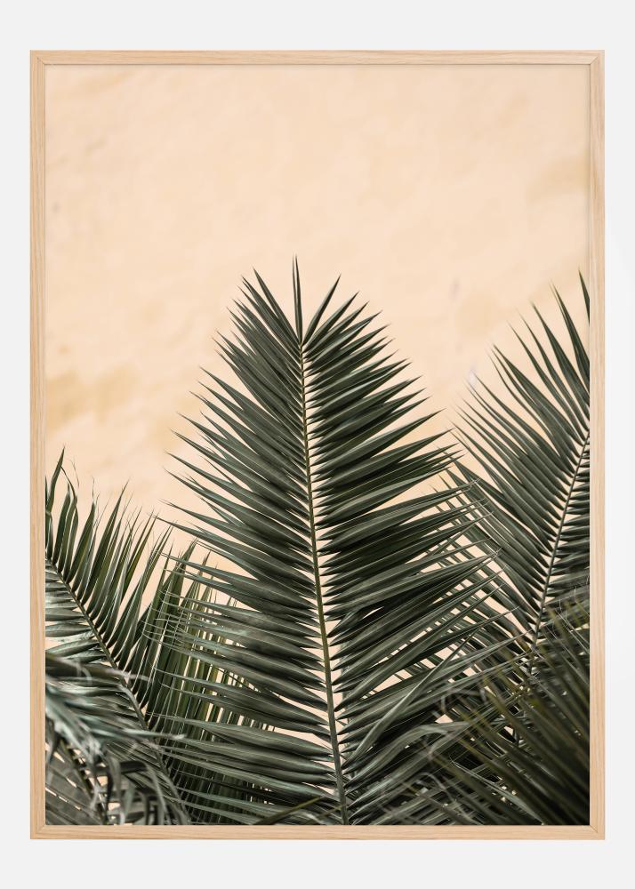 Ustvarite občutek topline in naravne lepote s to elegantno posterjem, ki poudarja eleganco ene same palmine veje proti teksturiranemu ozadju. Ta plakat ujame podroben vzorec palmnih listov, katerih bogati zeleni odtenki kontrastirajo s toplo, peščeno obarvano ozadje, kar spominja na pomirjujoč sončni zahod na eksotični plaži.