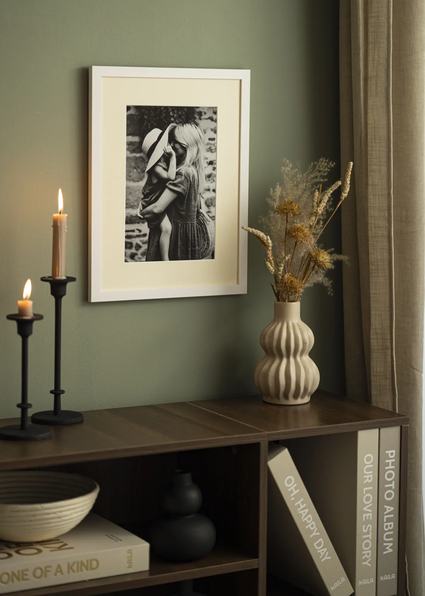 Ta passepartout ima eleganten, starobel odtenek, ki se poda k vsem, in daje sliki svež vtis. Material izvira iz trajnostnega gozdarstva, in passepartout je tako kislin prost kot tudi nevtralen PH, kar ohranja kakovost motiva.