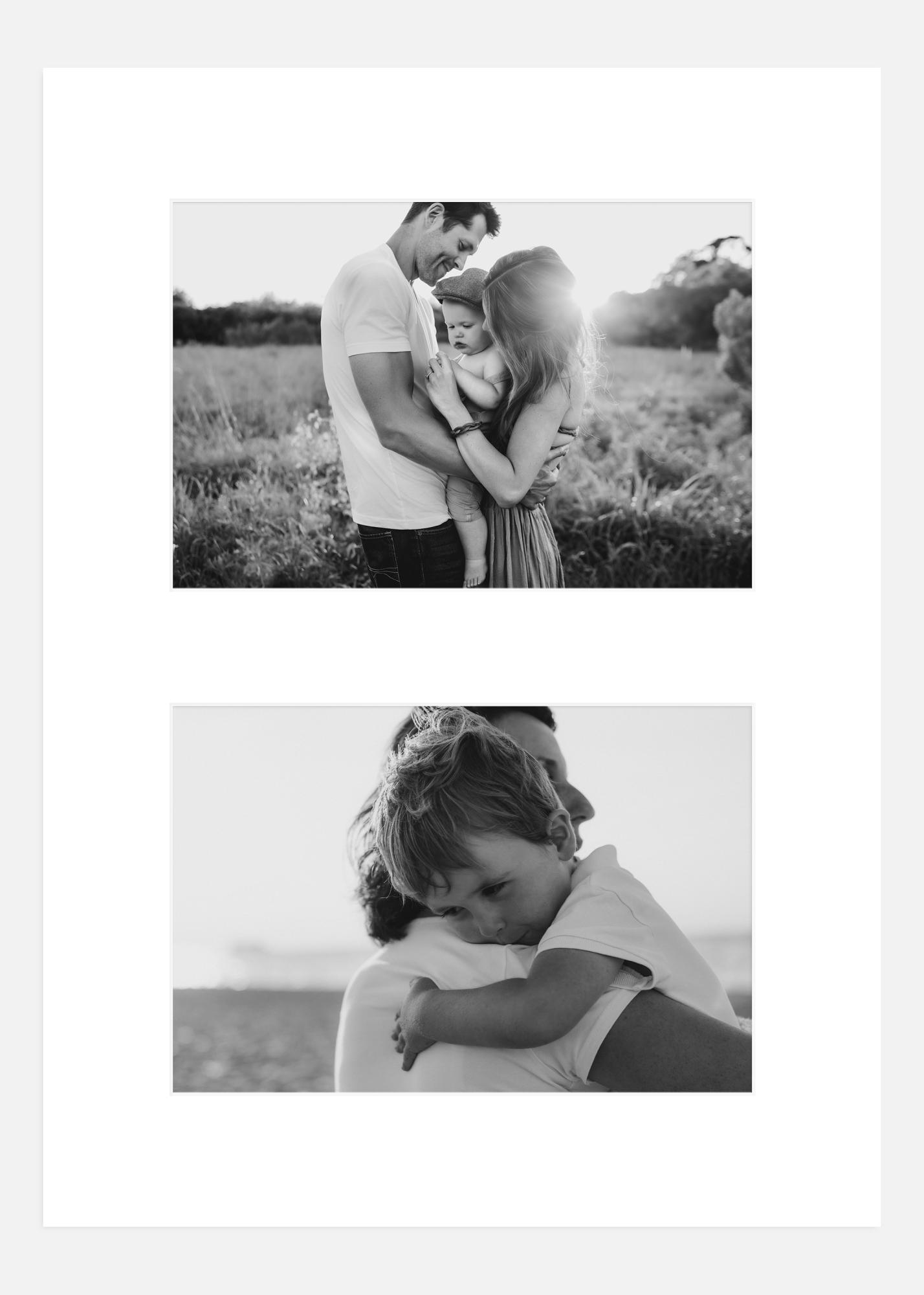 Brezkislinski bel kolažni passepartout s poševno odrezanimi belimi robovi najvišje kakovosti. Passepartout vsebuje prostor za 2 sliki. Popolno, ko želite ustvariti svoj lasten fotokolaž.