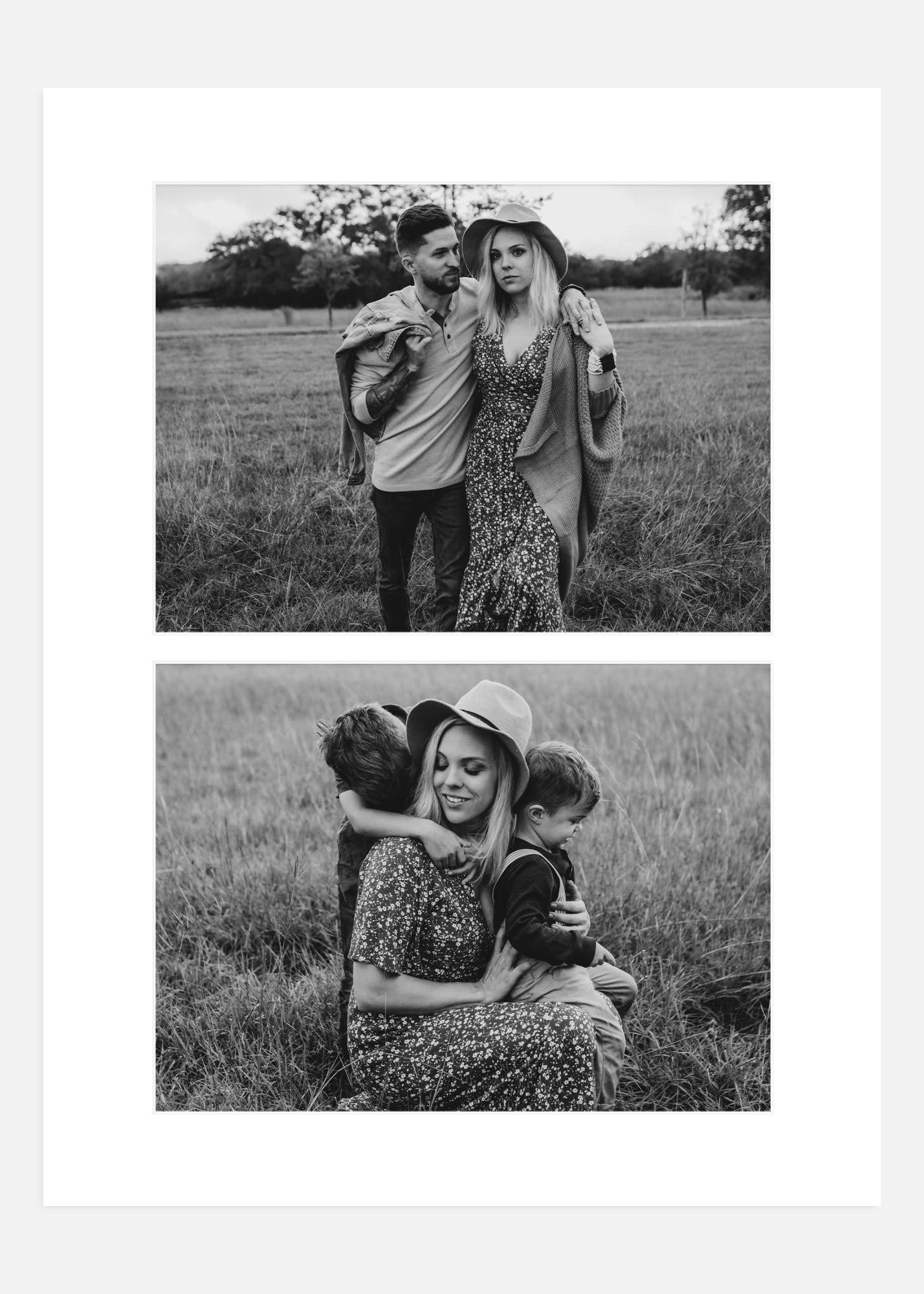 Kislinsko brezbel kolažni paspartu s poševno rezanimi belimi robovi najvišje kakovosti. V paspartuju je prostor za 2 sliki. Popolno, ko želite ustvariti lastni fotokolaž.