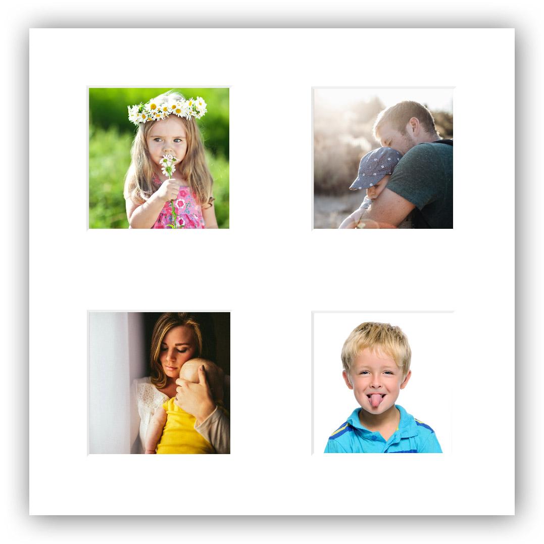 Kislo prost bela collage passepartou s poševno obrezanimi belimi robovi najvišje kakovosti. V paspartuju je prostor za 4 slike. Popolno, ko želite ustvariti svojo osebno fotokolažo.
