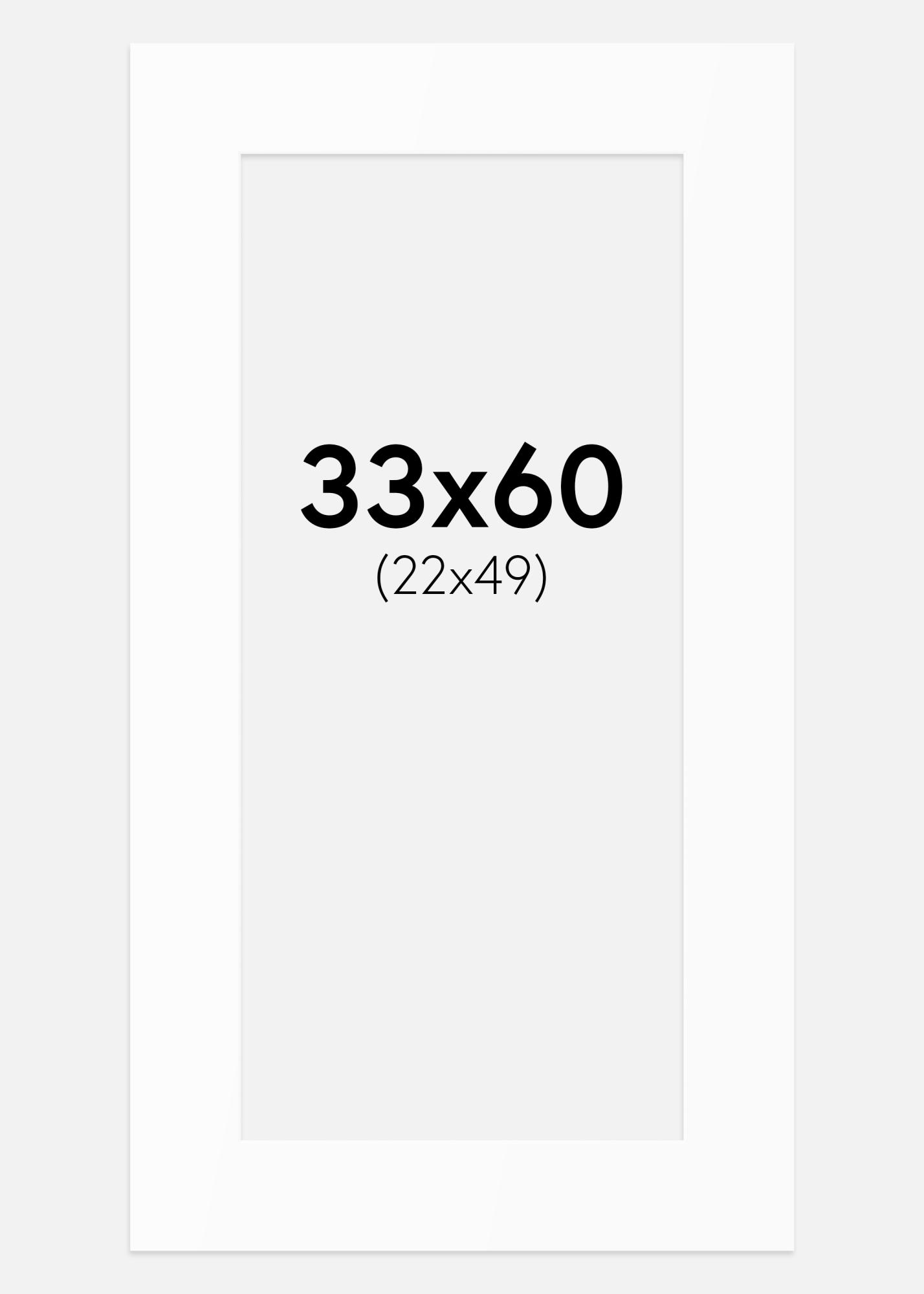 Ta eleganten paspartu v beli barvi je popolna izbira za poudarjanje vaših slik in umetnin. Z notranjo velikostjo, ki ustreza slikam v velikosti 23x50 cm, in zunanjimi merami 33x60 cm, ponuja lep okvir, ki daje vašim motivom prostor, ki si ga zaslužijo. Poševni notranji rob v isti beli barvi ustvarja subtilno globino in eleganten okvir, ki resnično izpostavi vaš motiv.