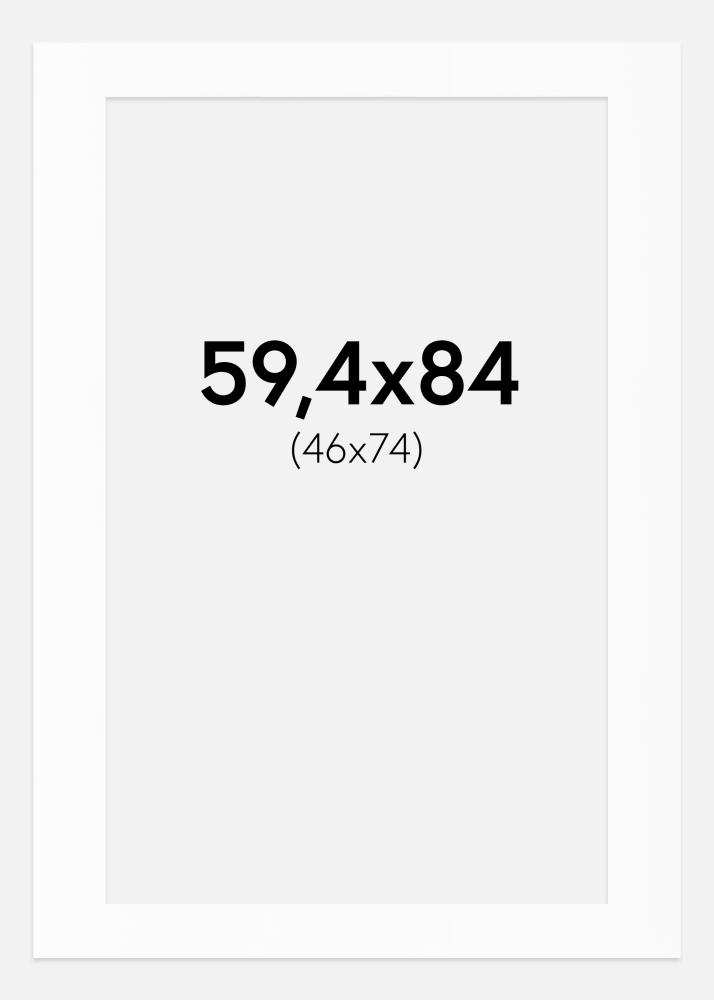 Ta eleganten podloga v beli odtenki je popolna izbira za poudarjanje vaših slik in umetniških del. S poševno odrezano notranjo stranjo v isti beli barvi ustvarja stilski okvir, ki daje globino in dimenzijo vašemu motivu. Podloga je zasnovana tako, da ustreza slikam velikosti 47x75 cm, medtem ko so zunanje mere 59,4x84 cm, kar ustreza formatu A1.
