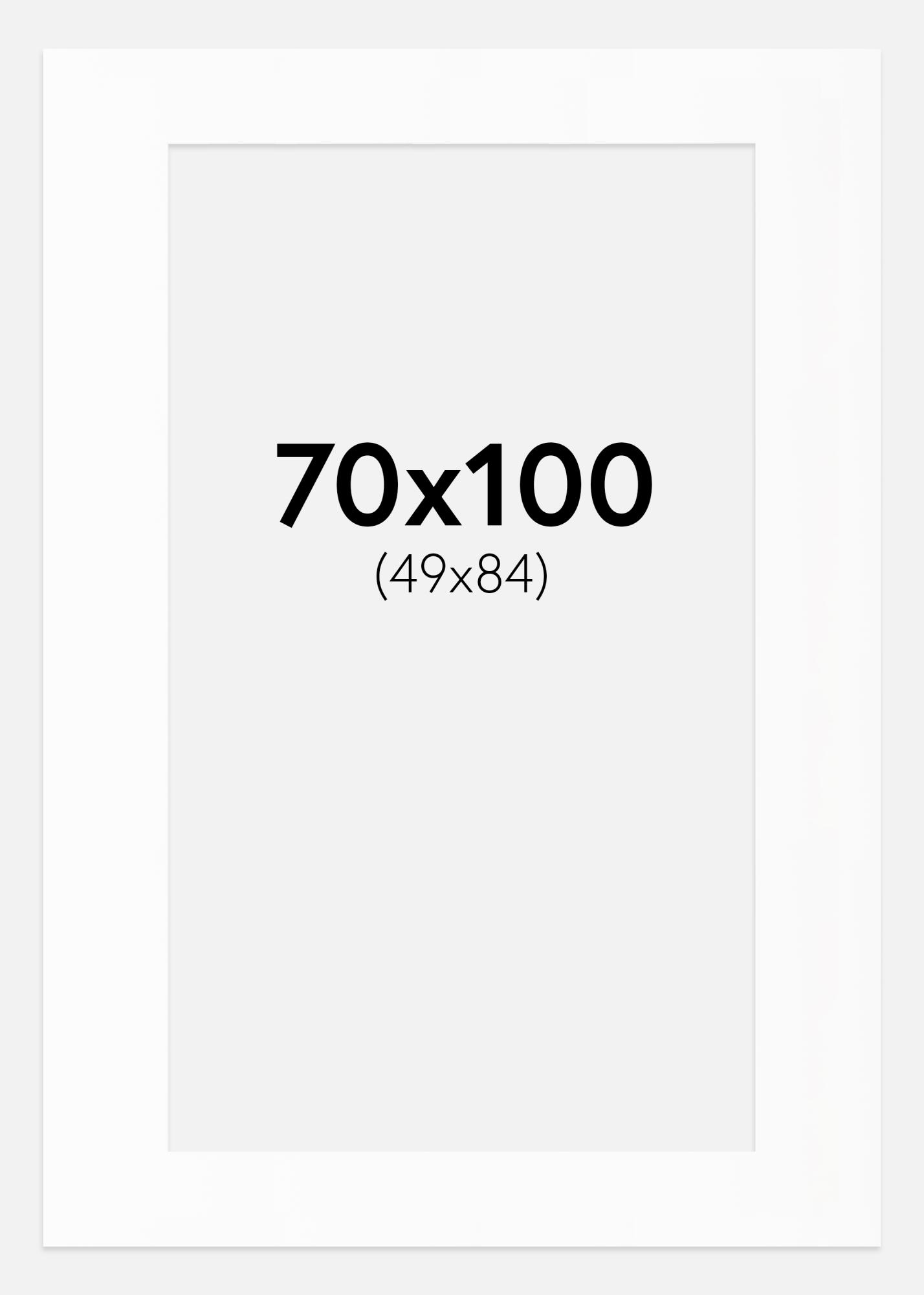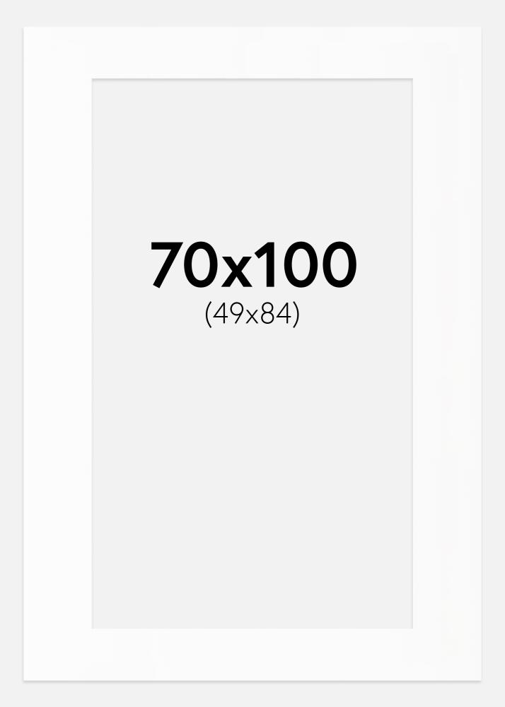 Ta elegantna paspartu v beli barvi je popolna izbira za elegantno uokvirjanje vaših fotografij in umetniških del. S poševno notranjo stranjo v isti beli barvi se ustvari globina, ki na prefinjen način poudari motiv. Paspartu je oblikovan za slike velikosti 50x85 cm, zunanje dimenzije pa so 70x100 cm, zaradi česar je idealen za večje okvirje.