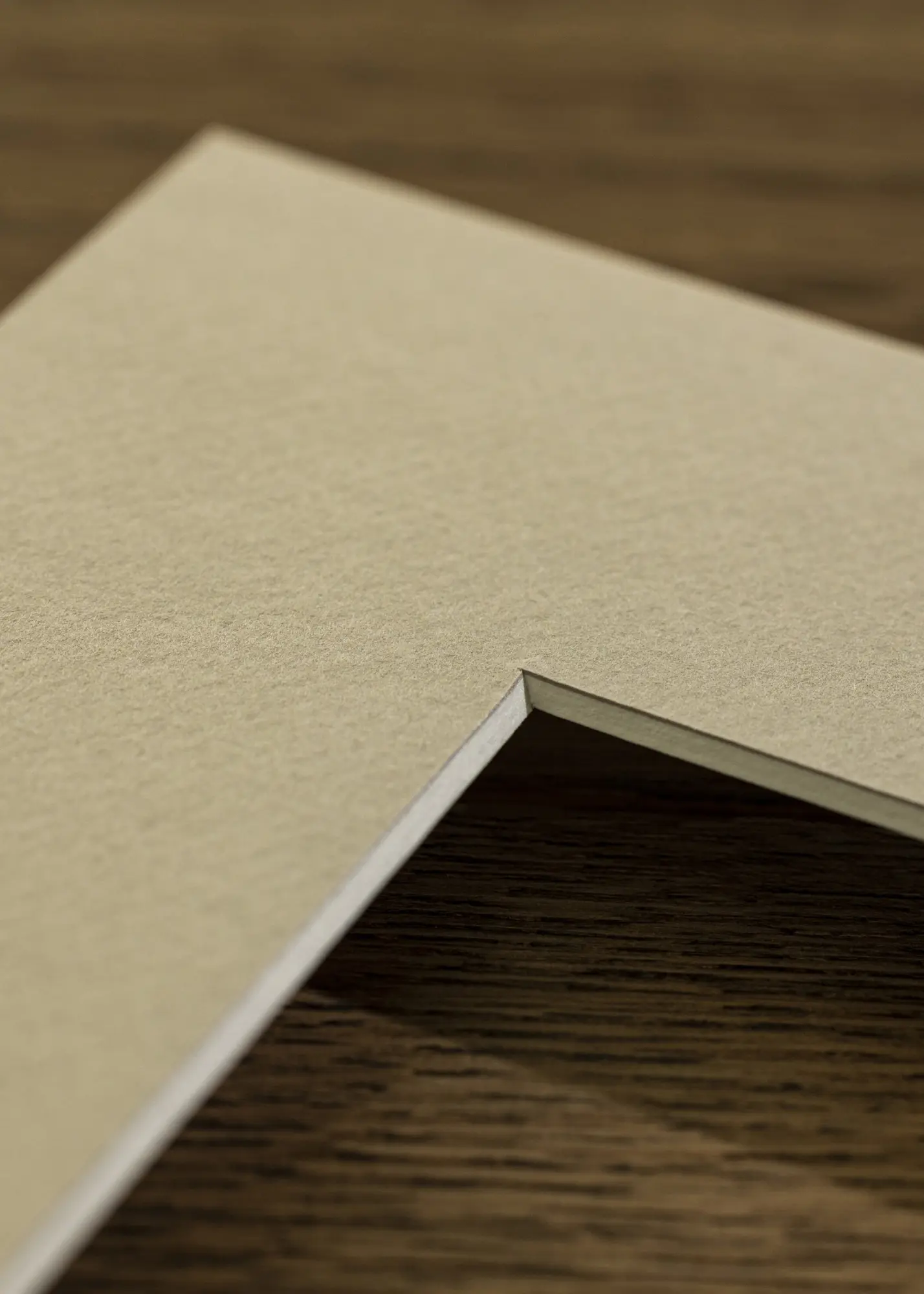 Passepartout je izdelan iz kislin prostega kartona, kar zagotavlja nežen prijem vaših fotografij in umetnin. Kislin prosto in PH-nevtralno gradivo zagotavlja, da vaše slike sčasoma ne bodo zbledela, kar jim daje dolgo življenjsko dobo in ohranja njihovo lepoto skozi mnogo let.