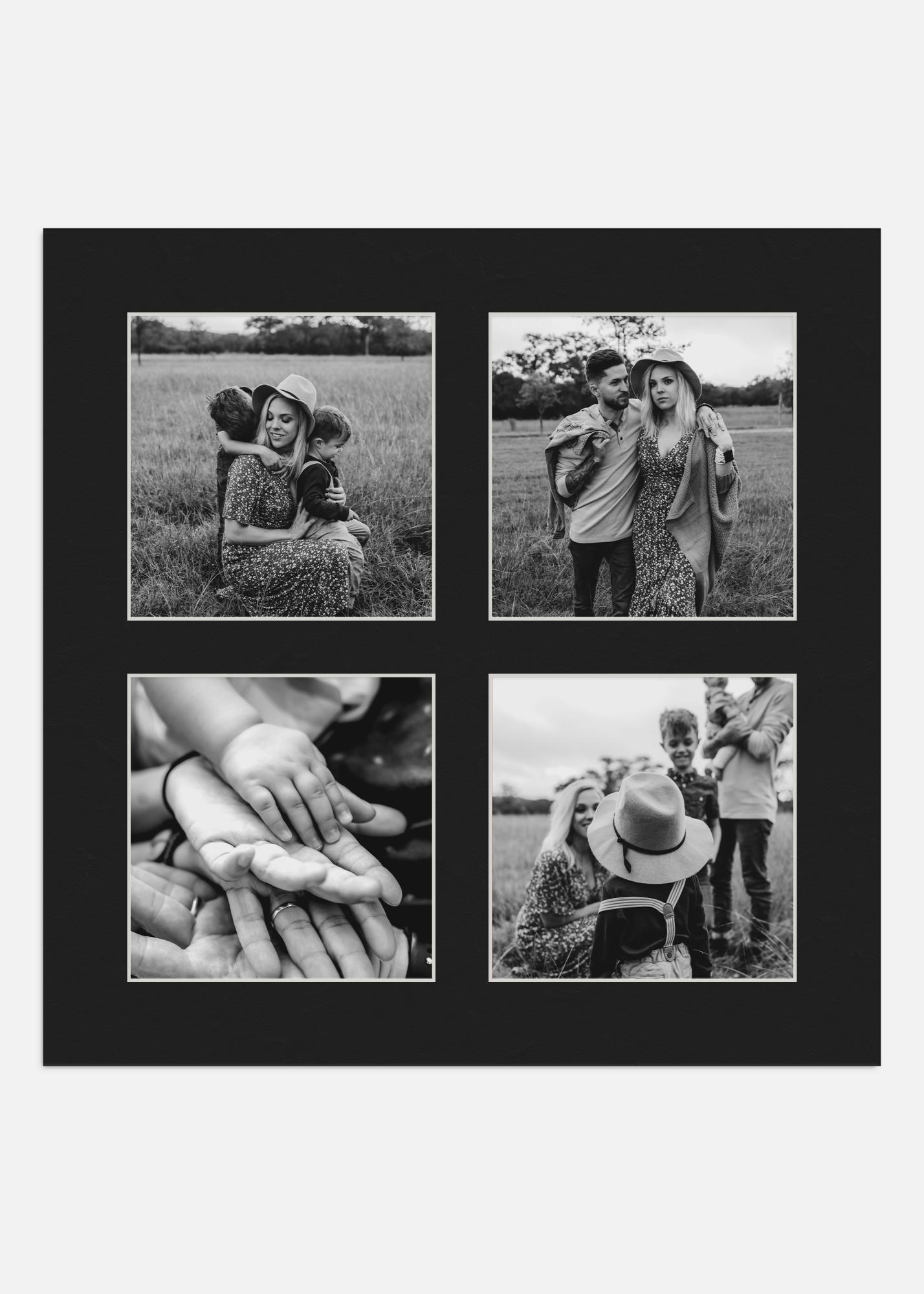 Kislinsko črn kolazni passepartout z poševnimi belimi robovi najvišje kakovosti. V passepartoutu je prostor za 4 slike. Popolno, ko želite ustvariti svojo osebno fotokolažo.