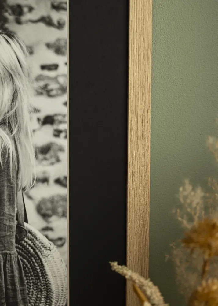 Poševno rezan notranji rob z belo sredico ustvarja subtilen kontrastni učinek, ki daje eleganten in globok okvir. Mat črna površina prispeva k elegantnemu in profesionalnemu videzu, zaradi česar motiv resnično pride do izraza.