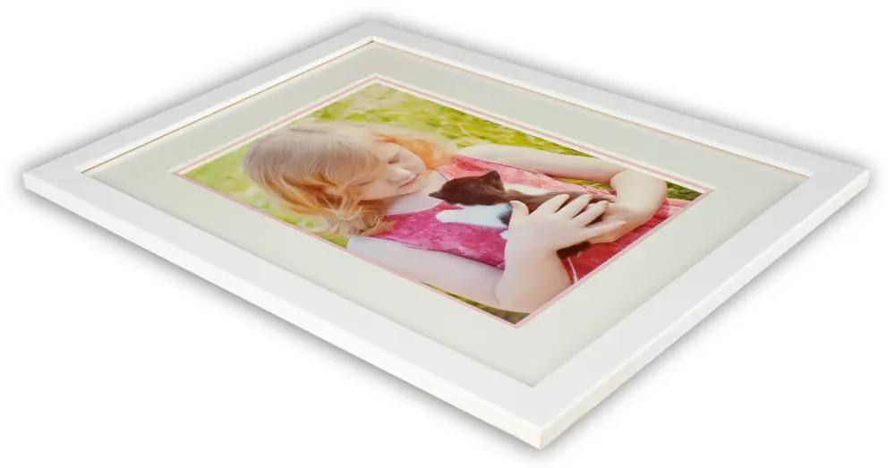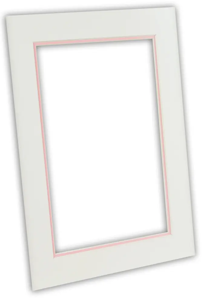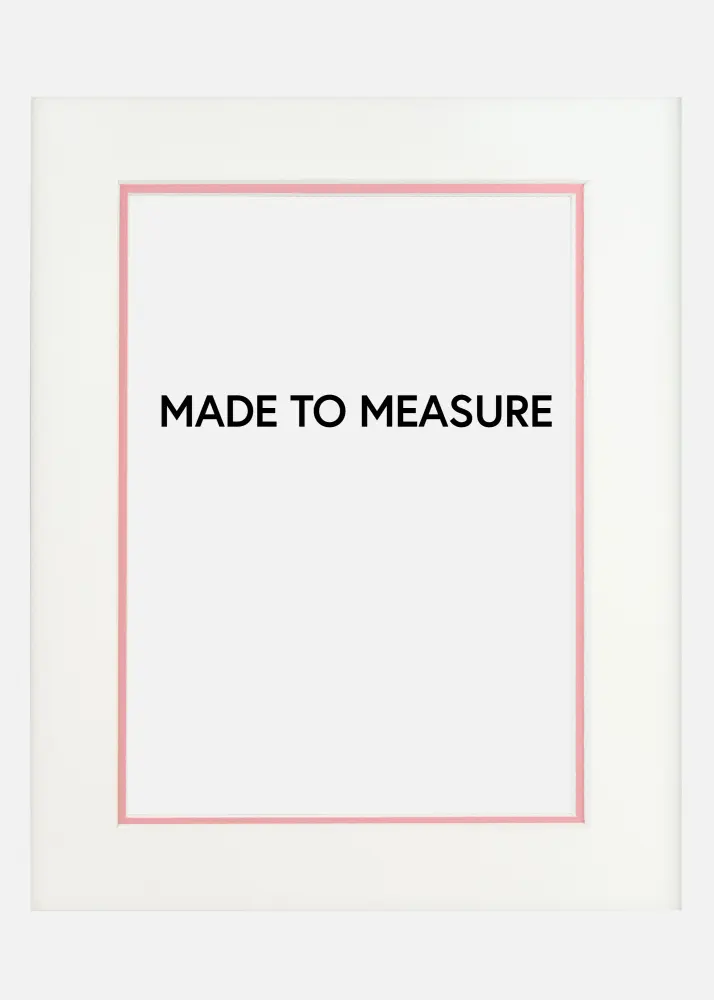 Po meri narejena passepartouja v dveh slojih z belo passepartoujo kot osnovo in spodnjim slojem v svetlo roza barvi, ki daje barvni rob 5 mm okoli slike. Popolno, ko želite ustvariti učinek z okvirjem, ki poudari vašo sliko in doda dodatno globino motivu. Vse naše passepartouje imajo lepo rezane robove pod kotom 45 stopinj, kar omogoča resen in profesionalen okvir za vaše slike.