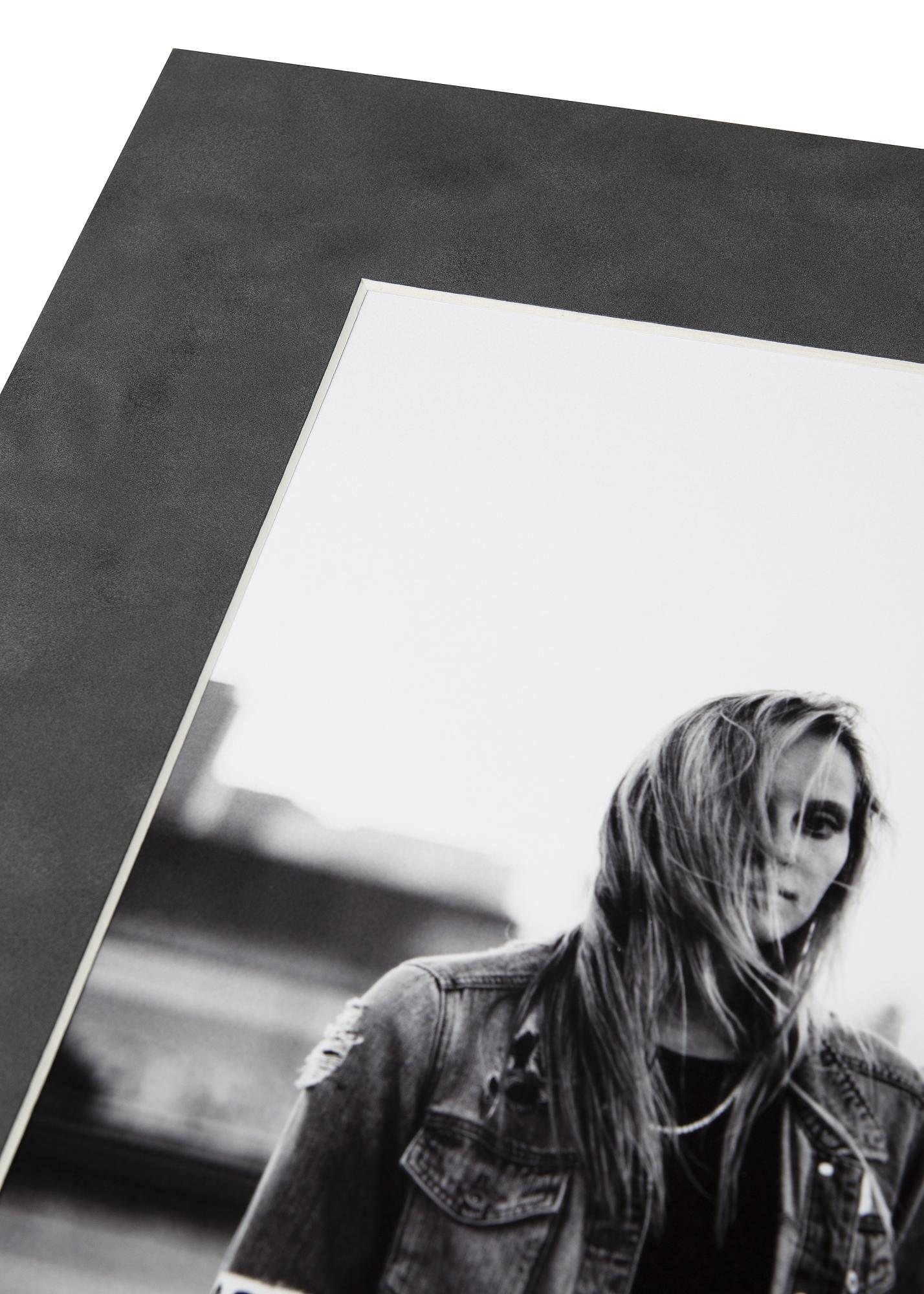 Passepartout ima luksuzen občutek semiša in je v izraziti, črni barvi. Temne passepartouti, kot je ta, so še posebej dobri za poudarjanje svetlih motivov.