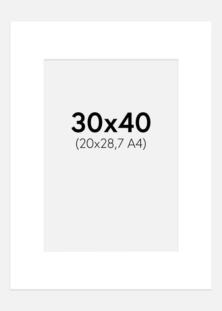 Passepartout Superbel omogoča, da motiv pride do izraza, s svojo super belo barvo in belo poševno odrezanimi robovi najbližje motivu. Bela passepartout daje tudi zračen in eleganten vtis! Ustreza vsem okvirjem, ki jih prodajamo – zapomnite si le, da morajo biti zunanje mere passepartout-a enake velikosti okvirja.