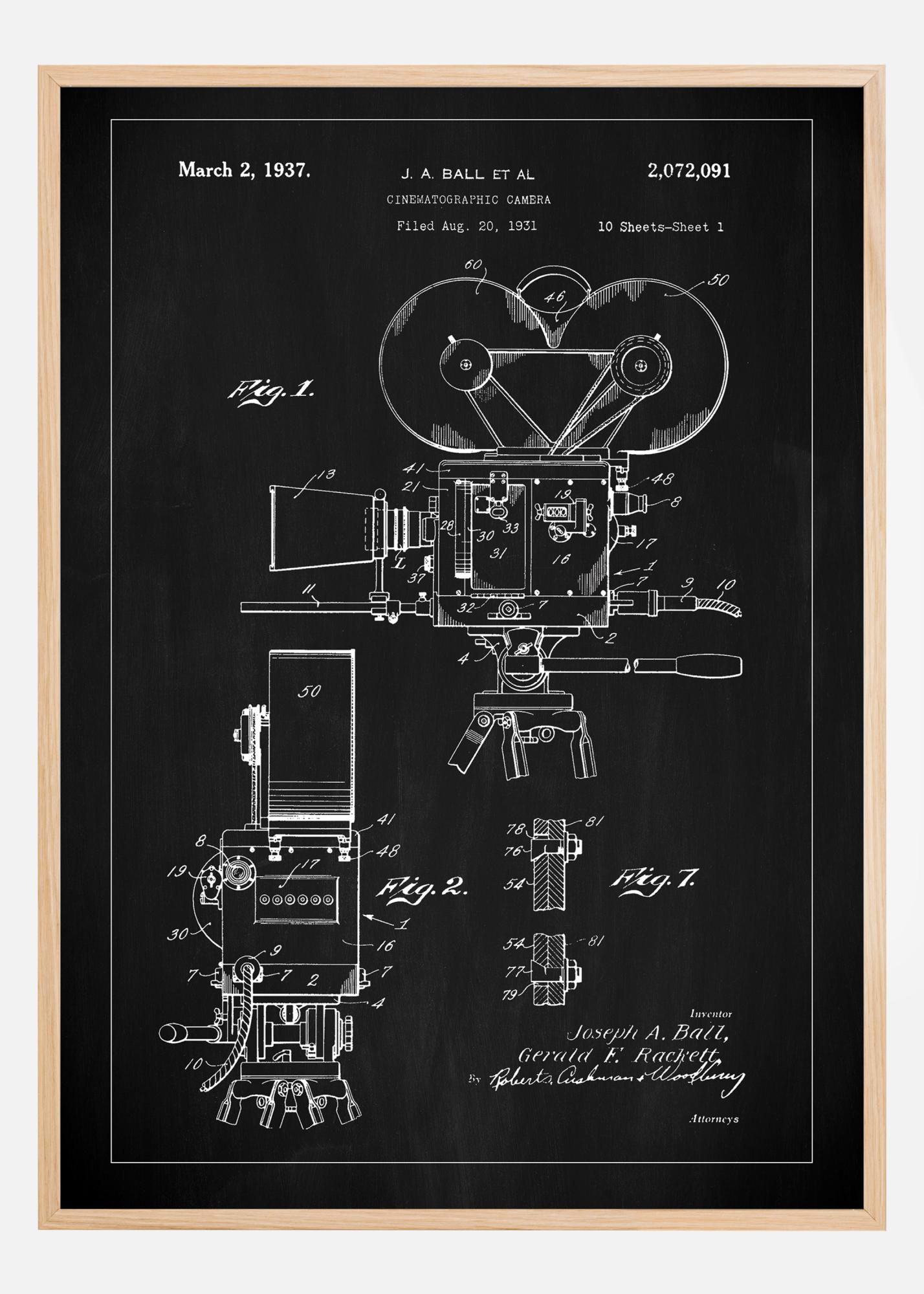 Ta elegantna patentna plakatna je del naše zbirke in predstavlja inovativno kinematografsko kamero, ki sta jo zasnovala Joseph A. Ball in Gerald F. Rackett. Patentirana je bila 2. marca 1937 s patentno številko 2,072,091, in ni le plakat, temveč zgodovinski dokument, ki prikazuje razvoj filmske tehnologije. Popolna je za tiste, ki cenijo filmsko zgodovino in njene zgodnje tehnične dosežke, ta patentni plakat pa dodaja sodoben pridih klasični zasnovi.