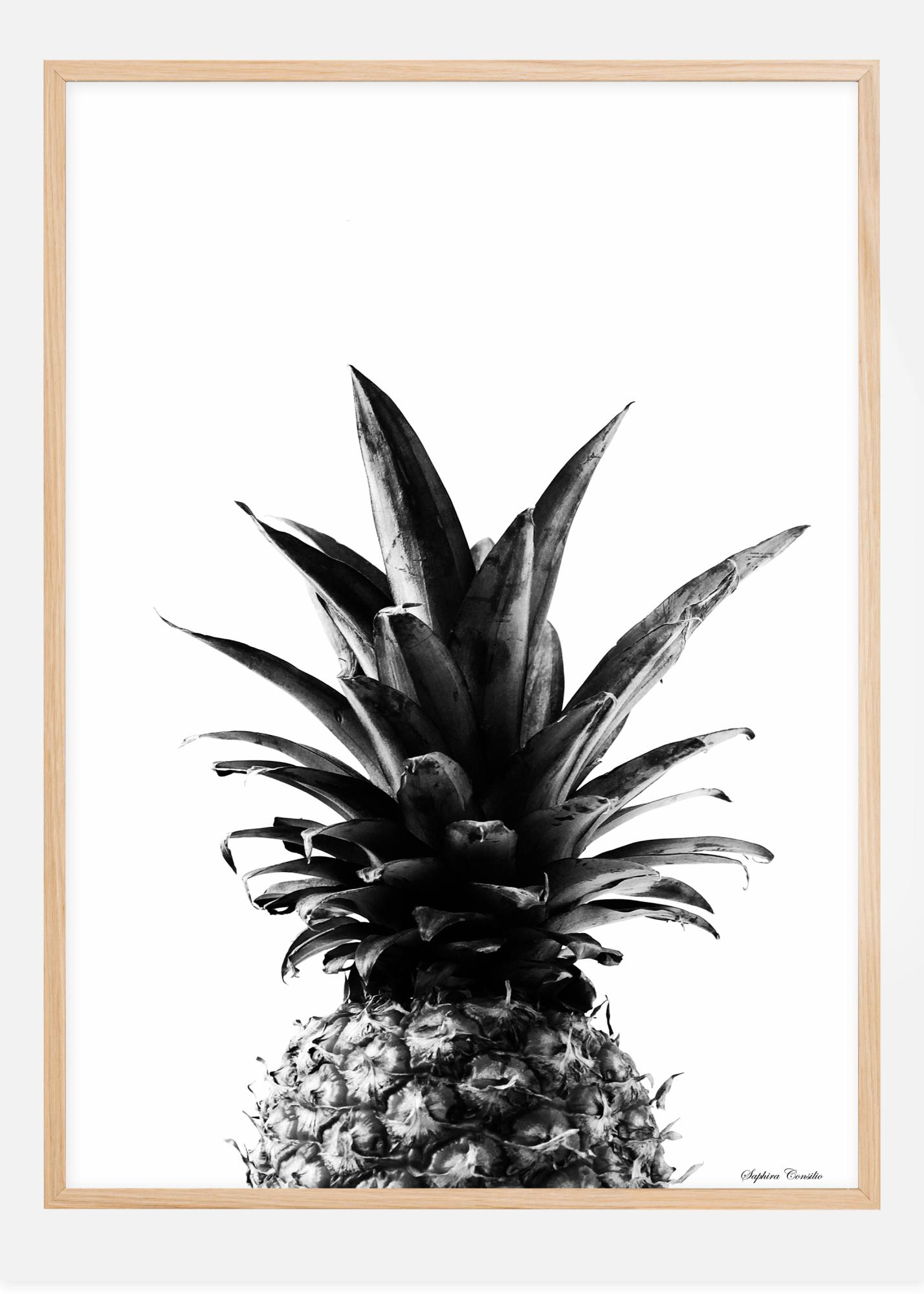Fotografski plakat v črno-beli tehniki s sliko ananasa na beli podlagi, posneti Saphira Consilio. Eleganten plakat v modernem slogu, enostaven za kombiniranje z drugimi plakati na večji steni s slikami.
