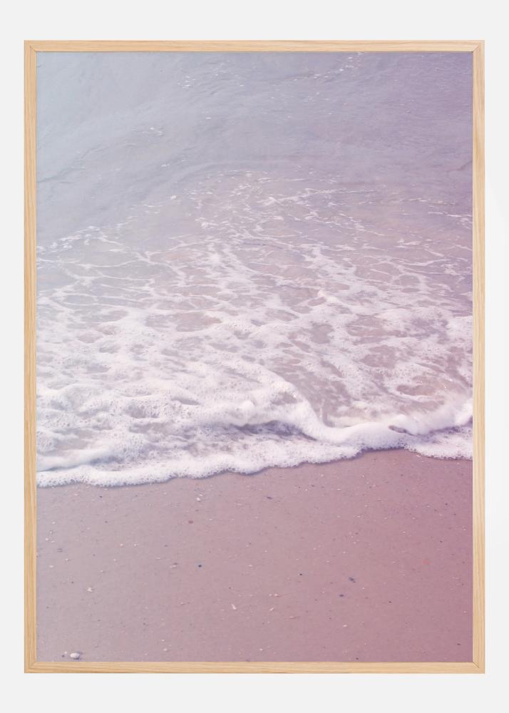 Čudovit portret morsko obale. Ko valovi butajo ob obalo, na pesku nastane bela pena. Čudovit roza pesek in morje ustvarjata poletno vzdušje. Vnesite poletje v svoj dom s tem osvežilnim plakatom.