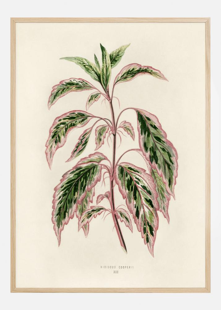Nežen odtis Plectranthus scutellarioides. Mehko bež ozadje poudarja lepe roza in zelene liste. S svojimi mehko toniranimi listi ta viseča rastlina daje občutek miru. Popolno darilo za vsakogar, ki ljubi rastline.
