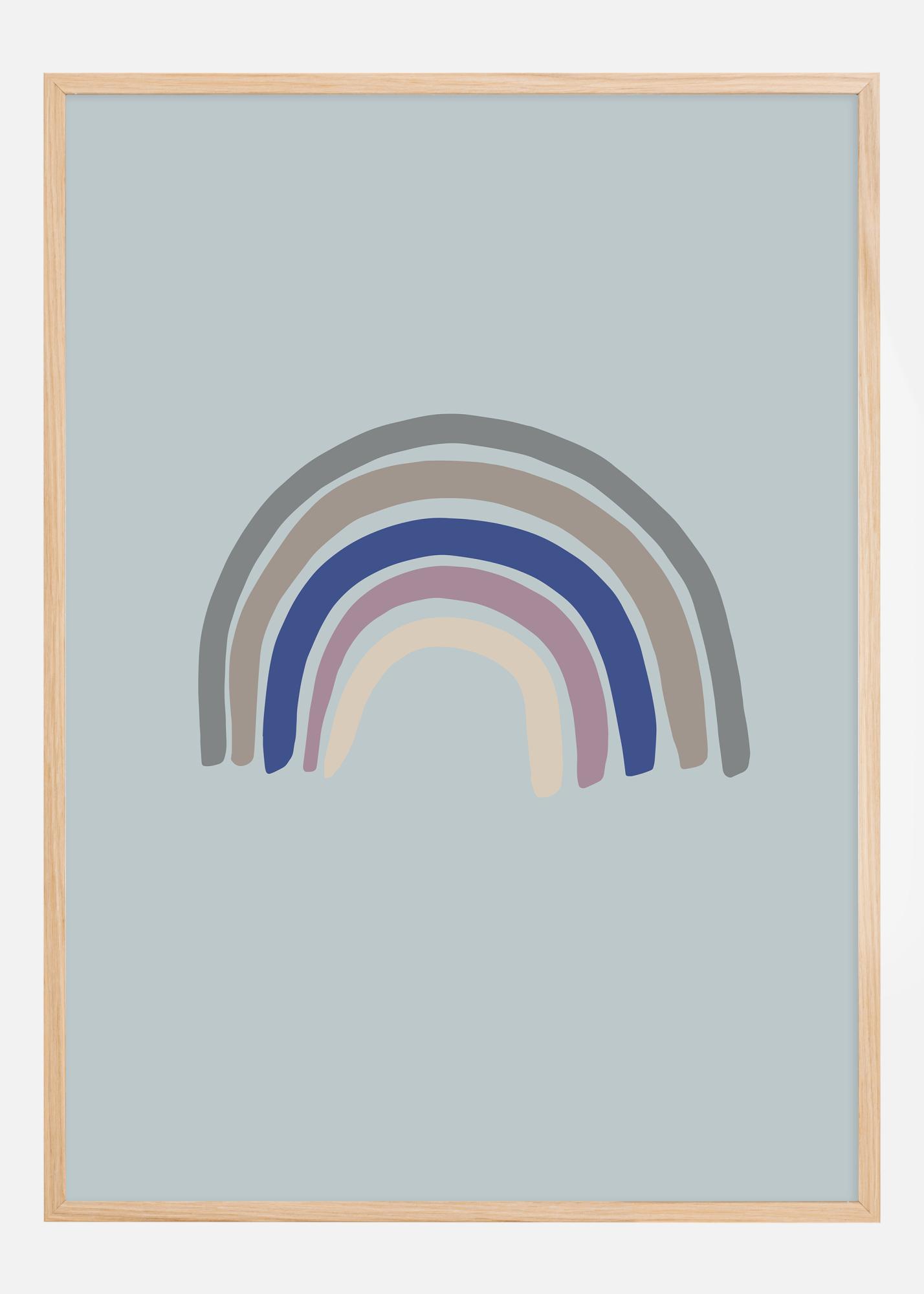 Ta poenostavljen in sodoben poster prikazuje stilizirano mavrico na pomirjujočem modrem ozadju, ki ponuja sodobno interpretacijo klasičnega motiva. Mavrični loki, v odtenkih sive, modre, roza in vijolične, ustvarjajo mehak prehod iz ene barve v drugo, hkrati pa dajejo občutek ravnotežja in harmonije. To minimalistično umetniško delo je subtilen, a močan opomnik na upanje in spokojnost ter bi bil sofisticiran dodatek k vsakemu sodobnemu prostoru.
