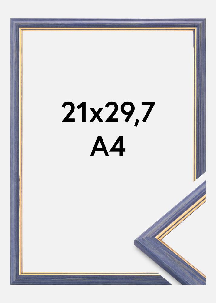 Ta eleganten okvir za slike velikosti 21x29,7 cm je popolna kombinacija klasičnega dizajna in moderne funkcionalnosti. S svojim globokim modrim zaključkom in subtilnimi zlatimi detajli vzdolž roba, ponuja sofisticirano okvirjanje za vaše najljubše motive. Ozki, profilirani okvir daje stilno kontrast, ki na edinstven način izpostavlja umetniška dela ali fotografije. Lesena struktura je diskretno vidna skozi barvo, kar okvirju daje topel in živahen značaj.