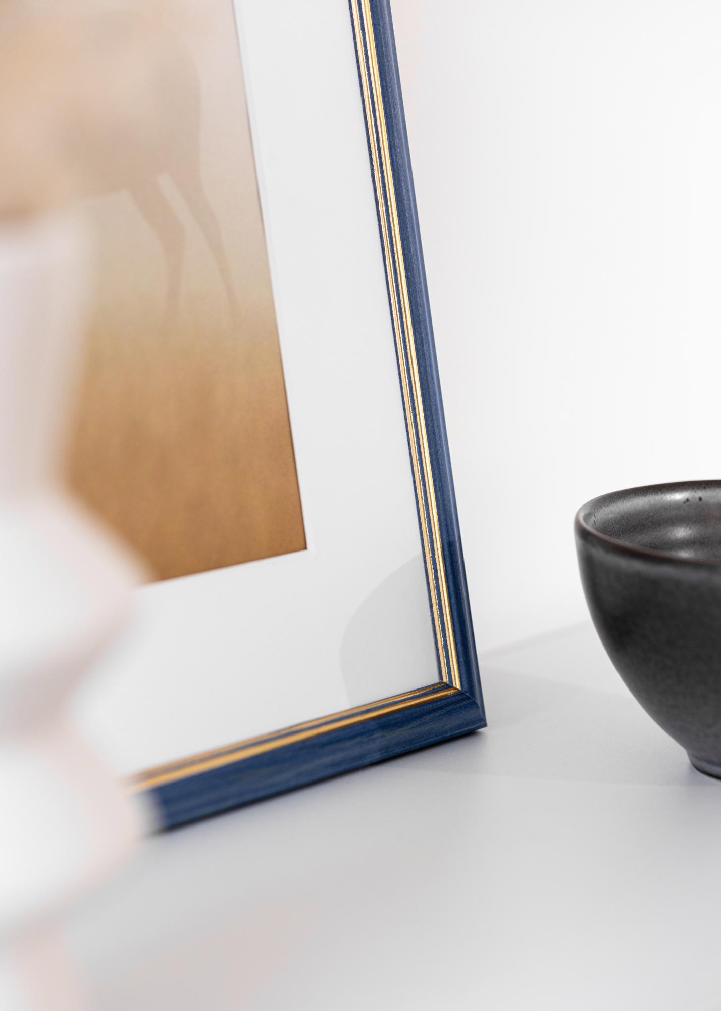 Ta elegantni slikovni okvir v globoko modrem odtenku je popolna kombinacija klasične zasnove in moderne funkcionalnosti. Z velikostjo okvirja 29,7x42 cm (A3) je idealen za izpostavljanje vaših najljubših umetniških del ali fotografij. Ozka, 15 mm široka letvica okvirja s subtilnimi zlatimi detajli vzdolž roba daje prefinjen občutek in ustvarja stilno kontrast proti motivu. Struktura lesa je diskretno vidna skozi barvo, kar okvirju daje topel in živahen značaj.