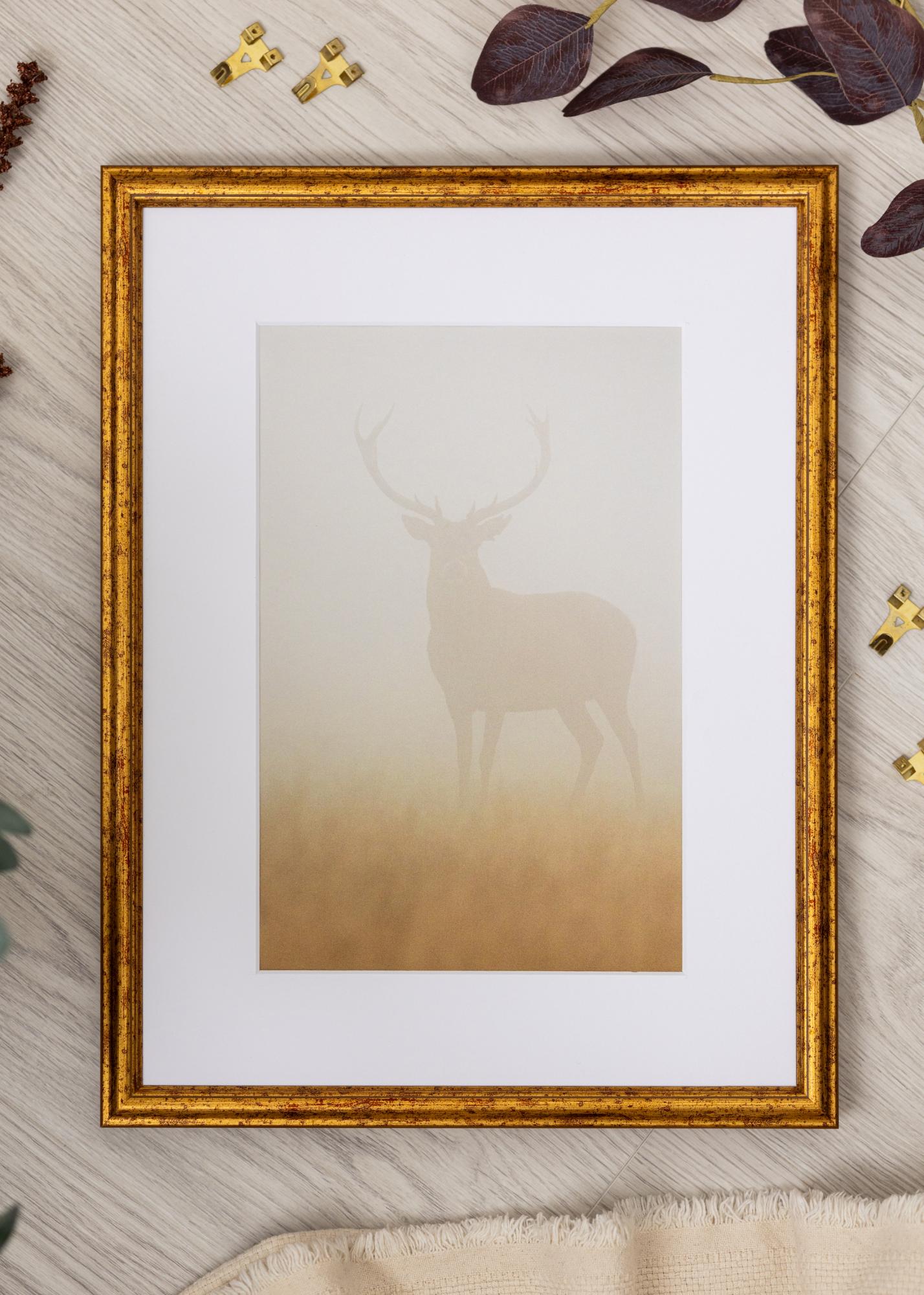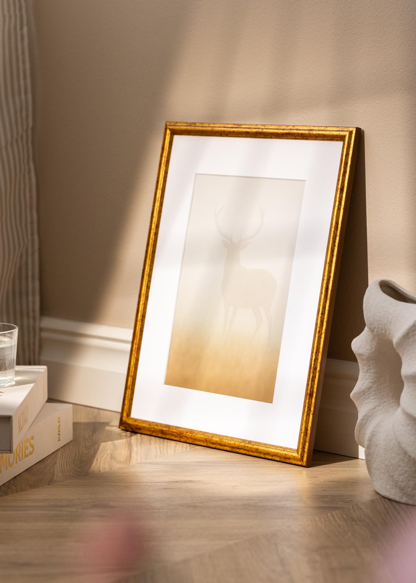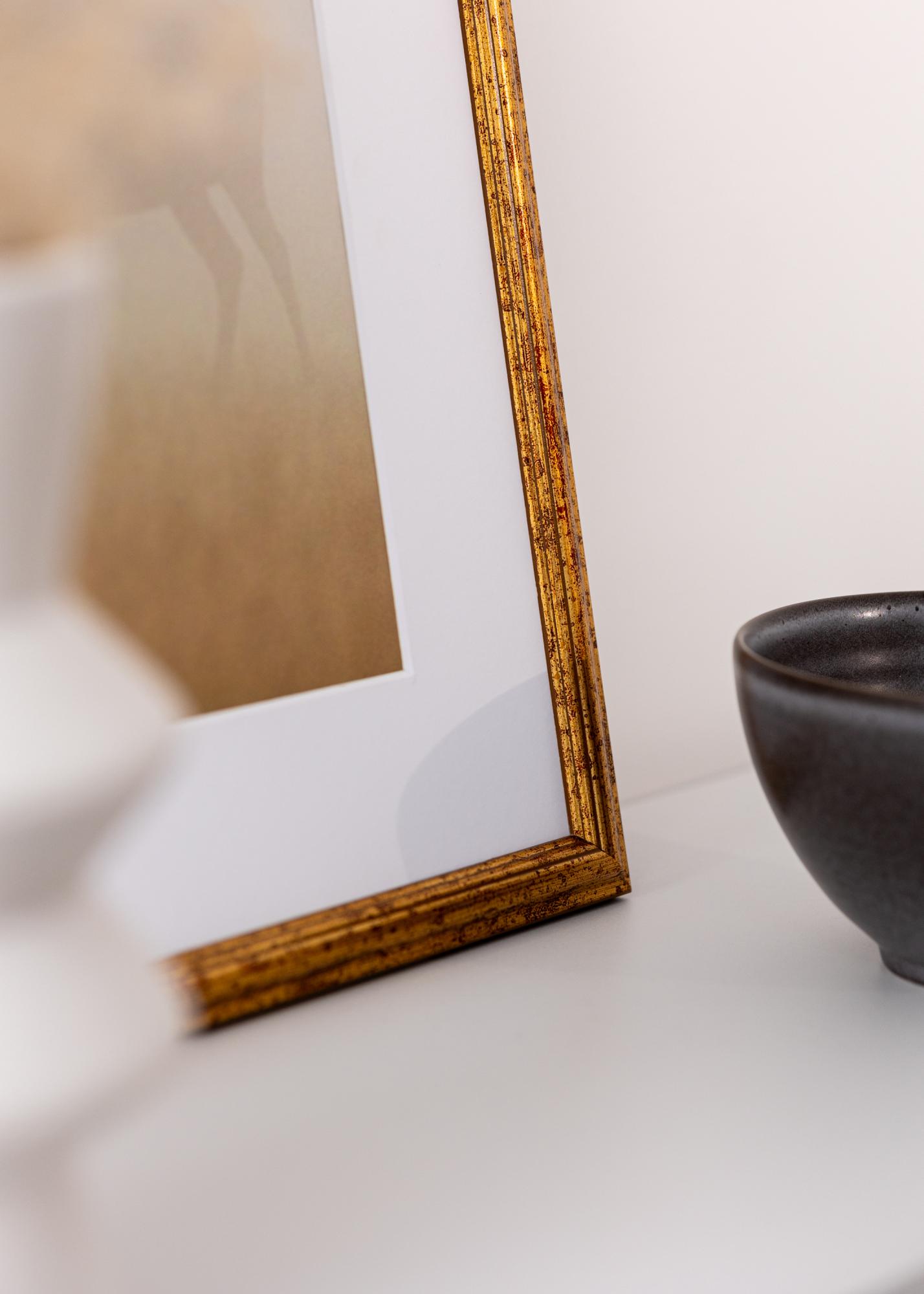 Ta elegantni okvir za fotografije v zlati barvi je popolna kombinacija klasičnega dizajna in moderne funkcionalnosti. S svojo velikostjo 50x70 cm je idealen za poudarjanje vaših najljubših motivov, ne glede na to, ali so tradicionalni ali moderni. Antično zlata obdelava z rahlo patino daje okvirju rustikalni šarm, ki vašemu domu doda pridih elegance in zgodovine.