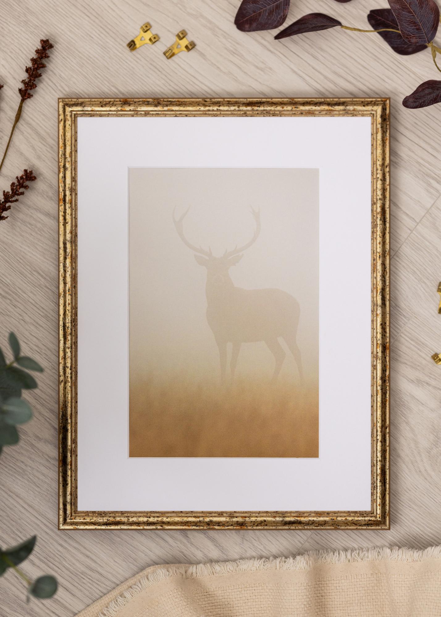Okvir za slike je izdelan iz lesa in ima 15 mm široko letvico ter globino 15 mm, kar daje stabilen in robusten občutek. Profilirana oblika z lepimi podrobnostmi in rahlo obrabljeno površino ustvarja klasično in prefinjeno vzdušje. Okvir je opremljen z metalnimi obešali na zadnji strani, kar omogoča enostavno obešanje tako vodoravno kot navpično, glede na to, kaj najbolj ustreza vašemu prostoru.