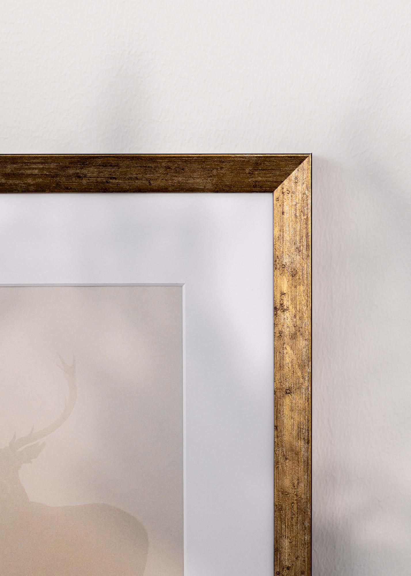 Ta eleganten okvir za fotografije v zlatu je popolna kombinacija občutka vintage in moderne funkcionalnosti. S svojim postaranim zlatim finišem in subtilno hrapavo površino ponuja rustikalni in brezčasni čar, ki povzdigne vsak prostor. Okvir je izdelan iz lesa in ima tanek profil z 20 mm široko letvico, kar daje sofisticiran videz. Idealna je za poudarjanje umetniških del ali fotografij z antičnim pridihom.