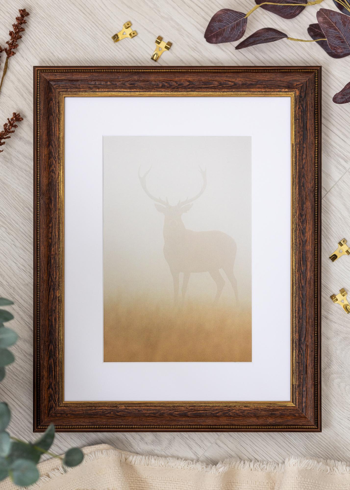 Ta elegantni okvir za fotografije velikosti 29,7x42 cm je popolna kombinacija rustikalnega šarma in klasične elegance. Izdelan v Italiji iz visokokakovostnega lesa, ima ta okvir globoko rjavo barvo z dekorativnimi zlatimi detajli vzdolž notranjega roba. Lesena struktura je jasno vidna in daje topel ter naraven občutek, medtem ko zlate podrobnosti dodajo prefinjen pridih, ki se odlično prilega tradicionalnim in starinsko navdihnjenim notranjim dekorjem.